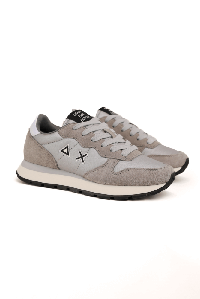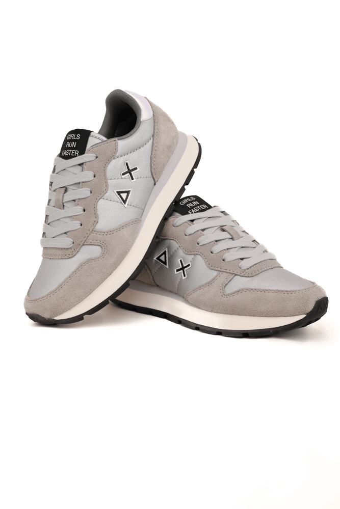 Sneakers donna in pelle e tessuto effetto lucido argento