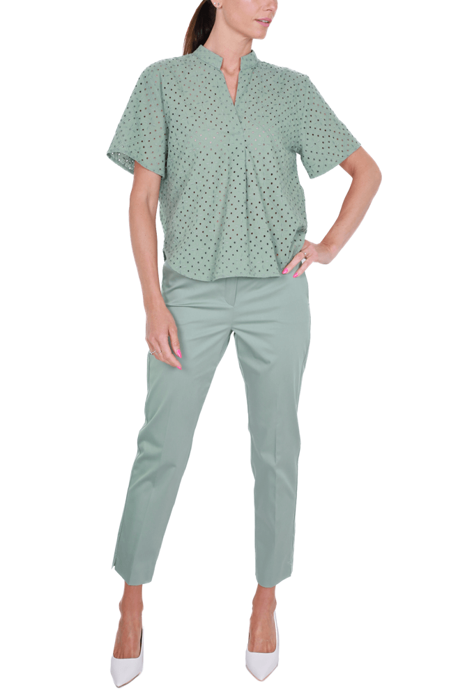 Pantalone a sigaretta in rasatello di cotone stretch, modello con tasche america
