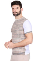 Maglia maniche corte grigia con maniche bianche a trama.