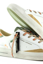Sneakers uomo bassa dettagli arancioni in pelle bianco