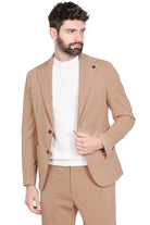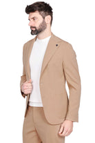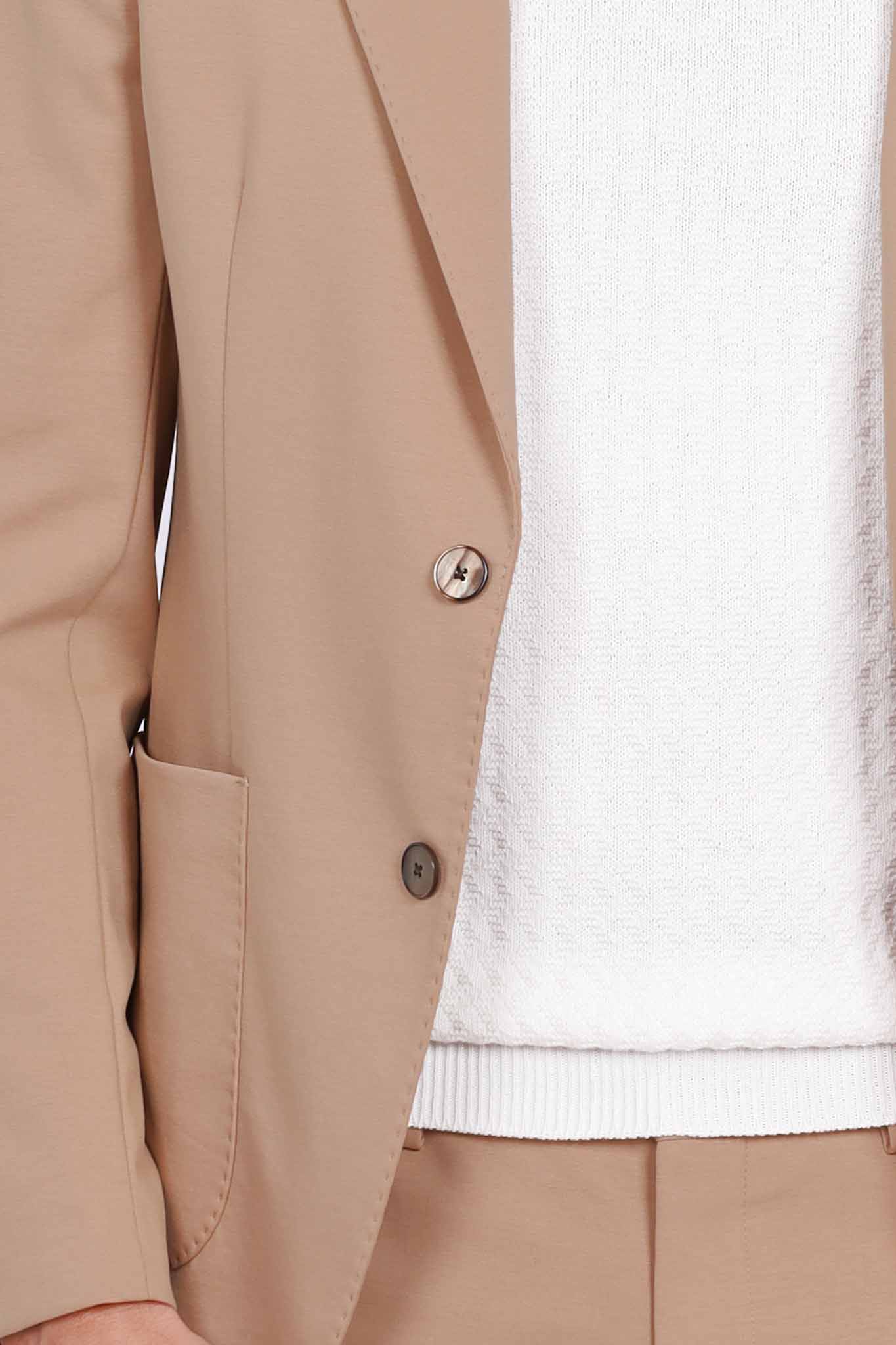 Giacca monopetto slim in tessuto beige chiaro elegante.