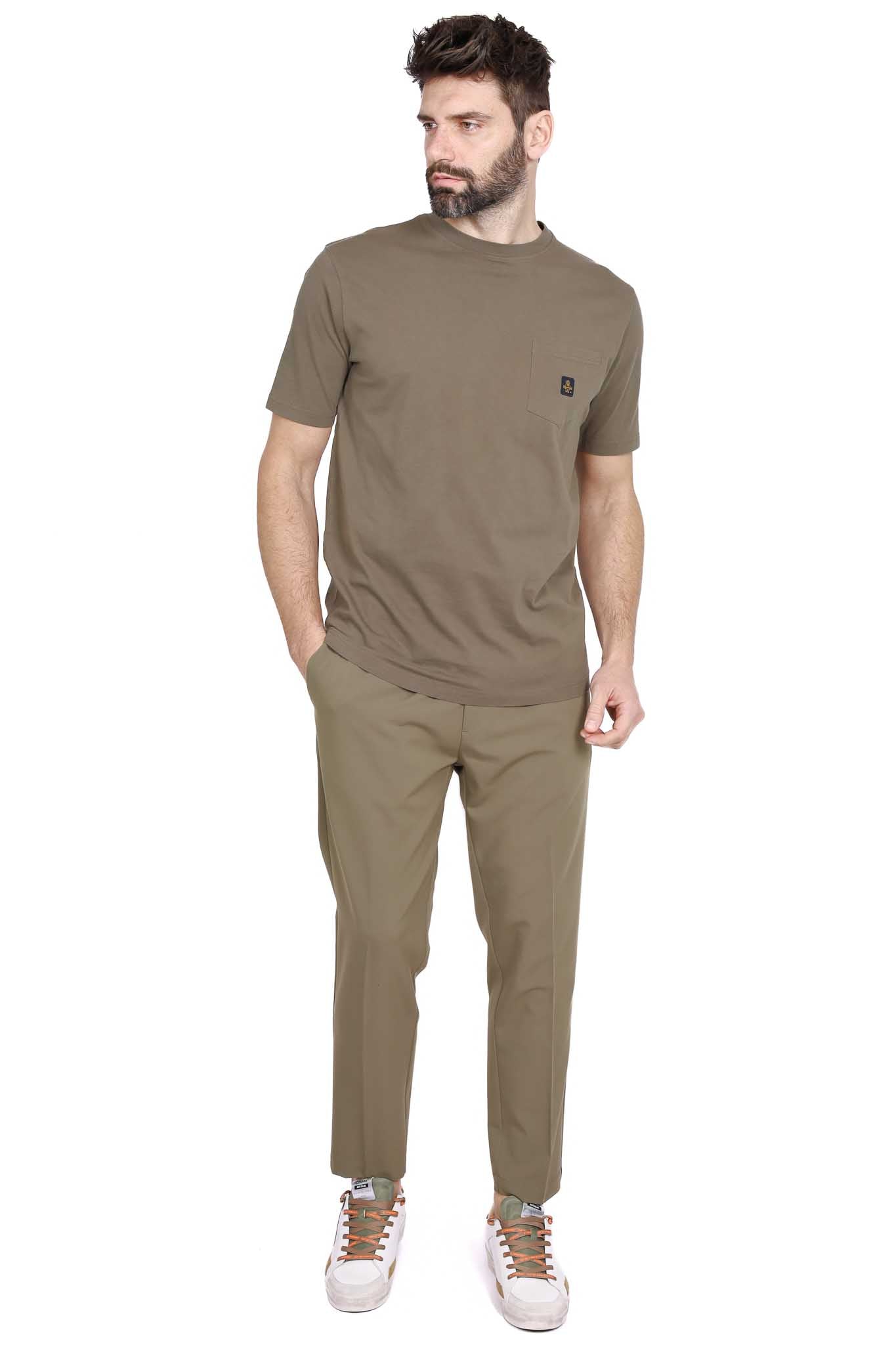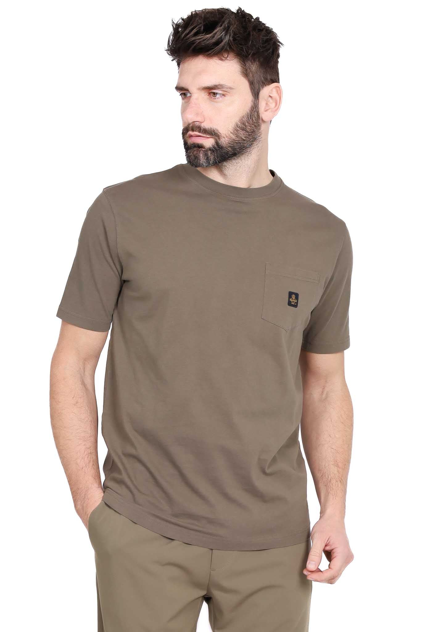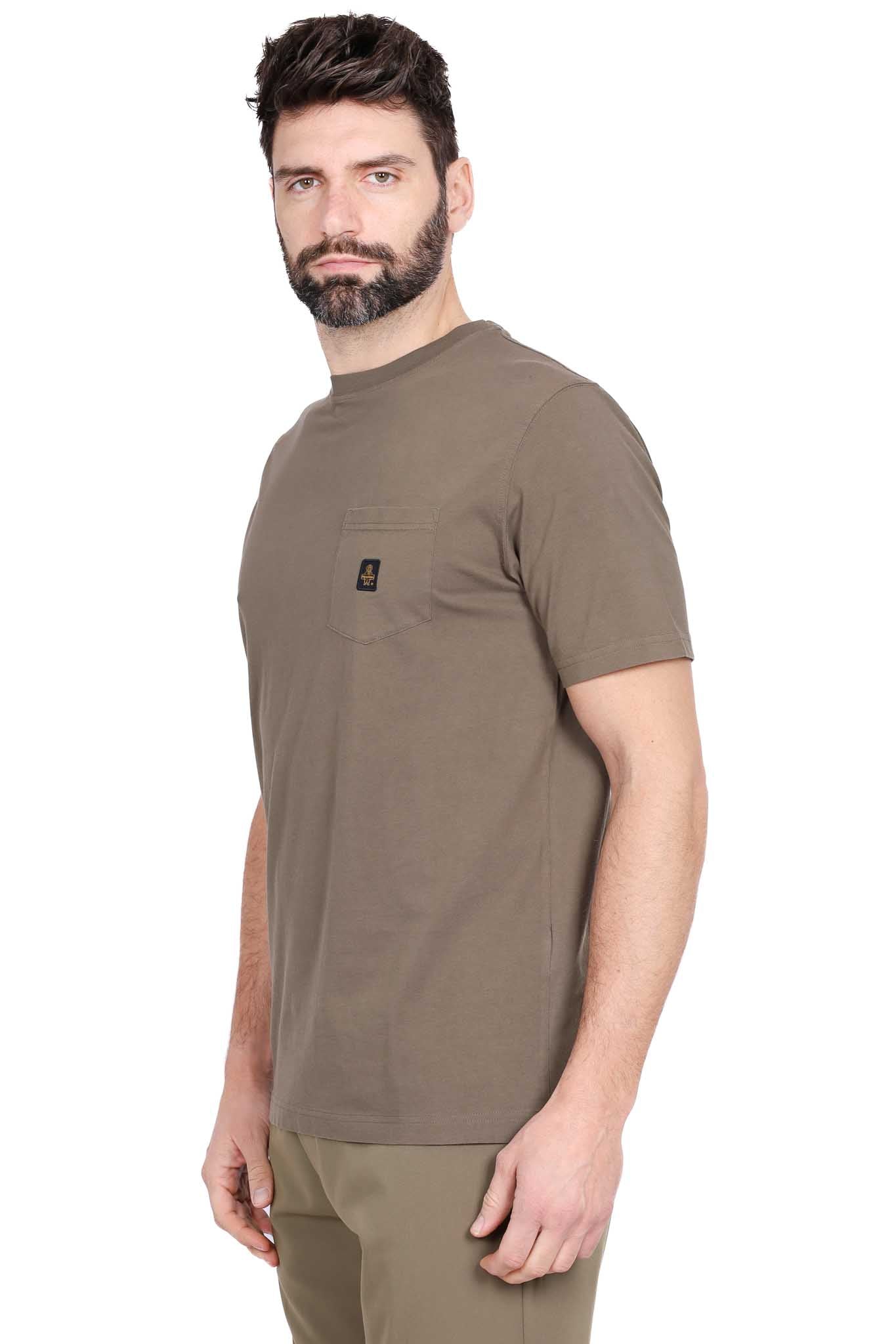 T-shirt maniche corte oversize in tonalità marrone con taschino logo sul petto. Cotone morbido per comfort quotidiano, vestibilità rilassata versatile.