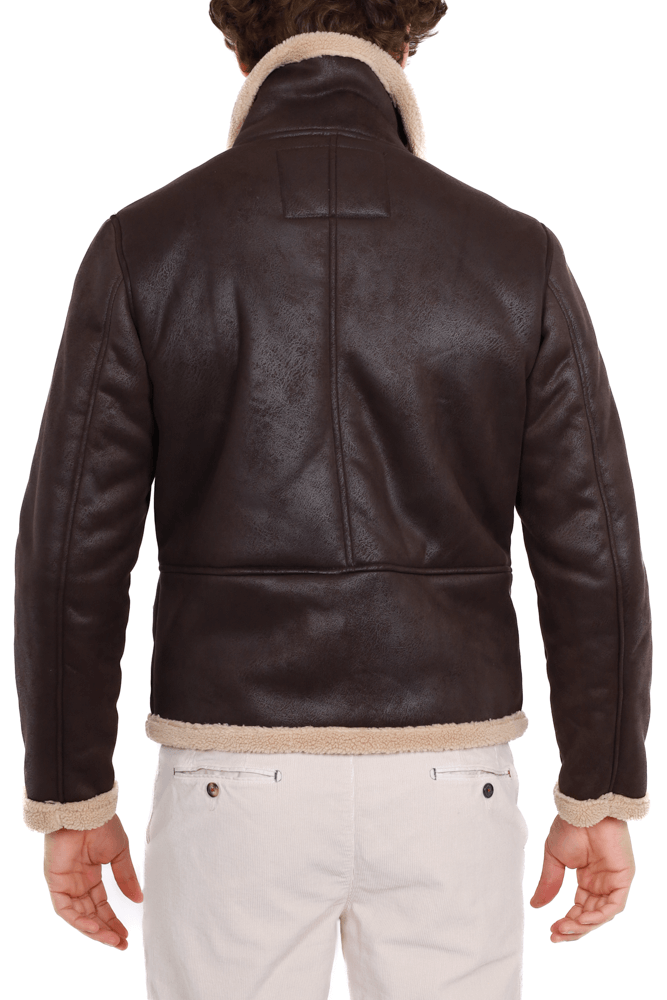 Giacca uomo in ecomontone, modello con caldo collo a camicia in ecopelliccia, aggiungi un tocco grintoso al tuo look invernale!