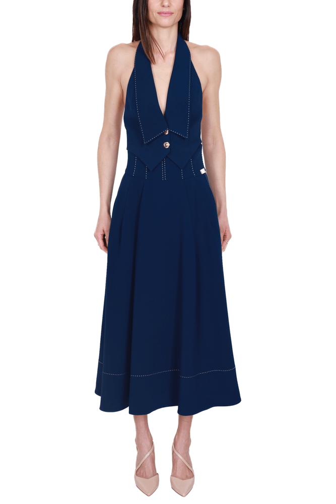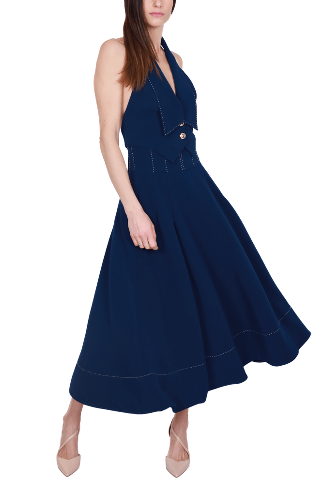 Gonna lunga a ruota in crepe leggero blu