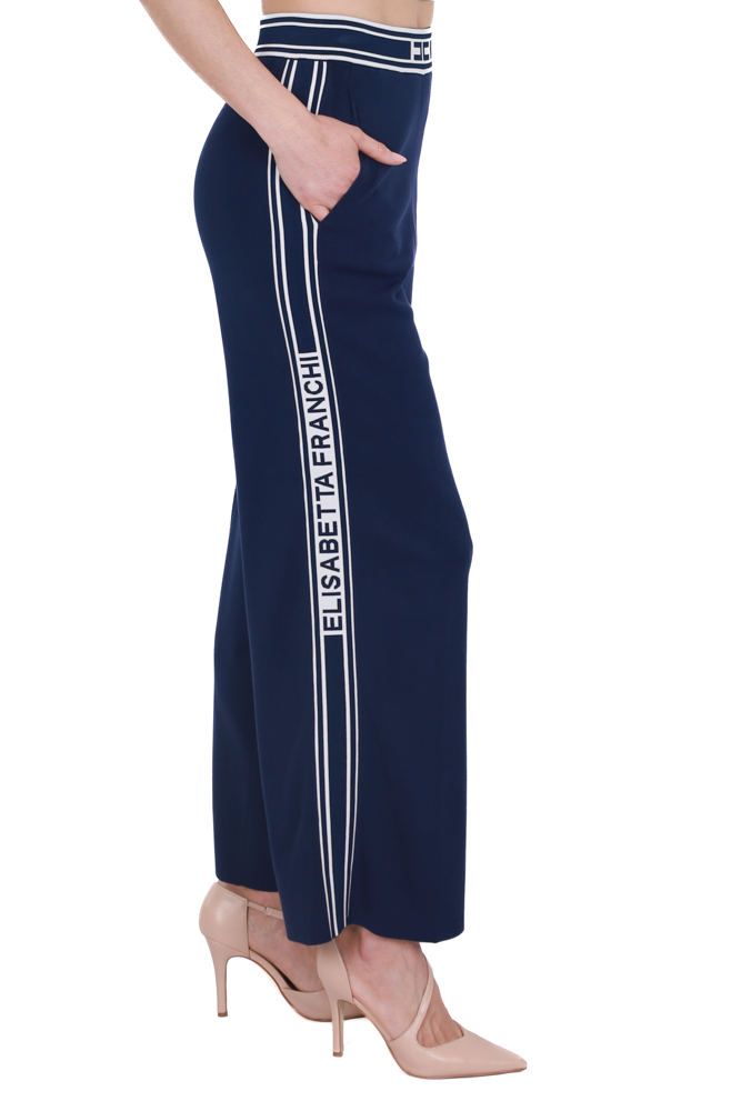Pantalone stile jogger in maglia di viscosa con bande laterali e cinturino logati