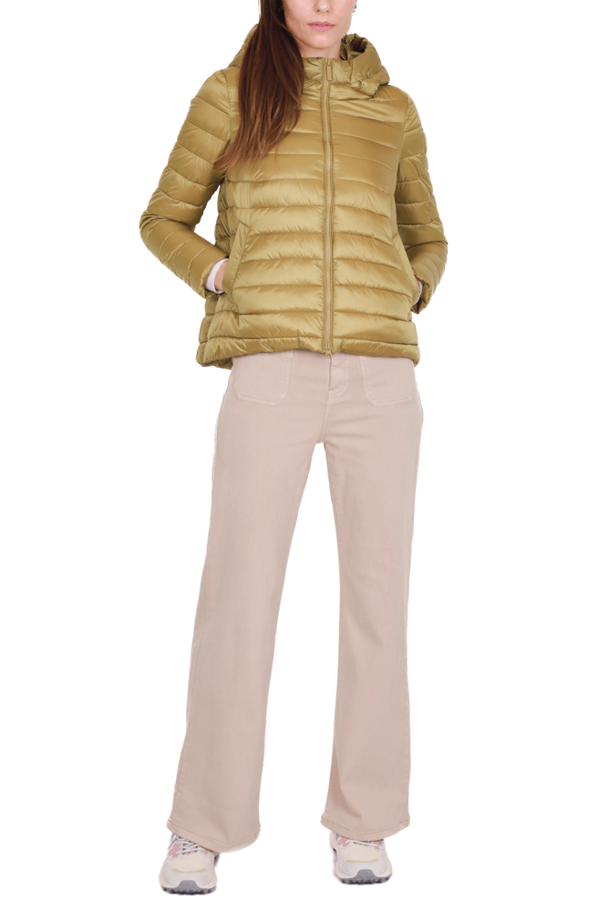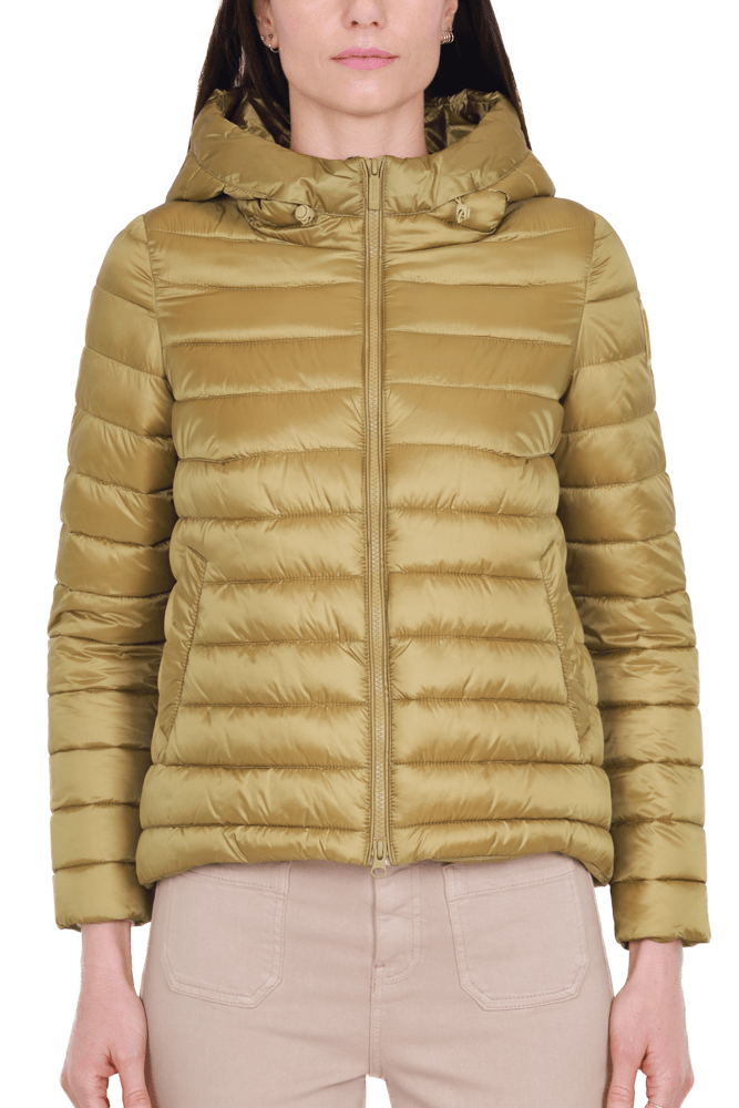 Giacca piumino 100 grammi con cappuccio in nylon effetto brillante perfetto per i tuoi look di mezza stagione