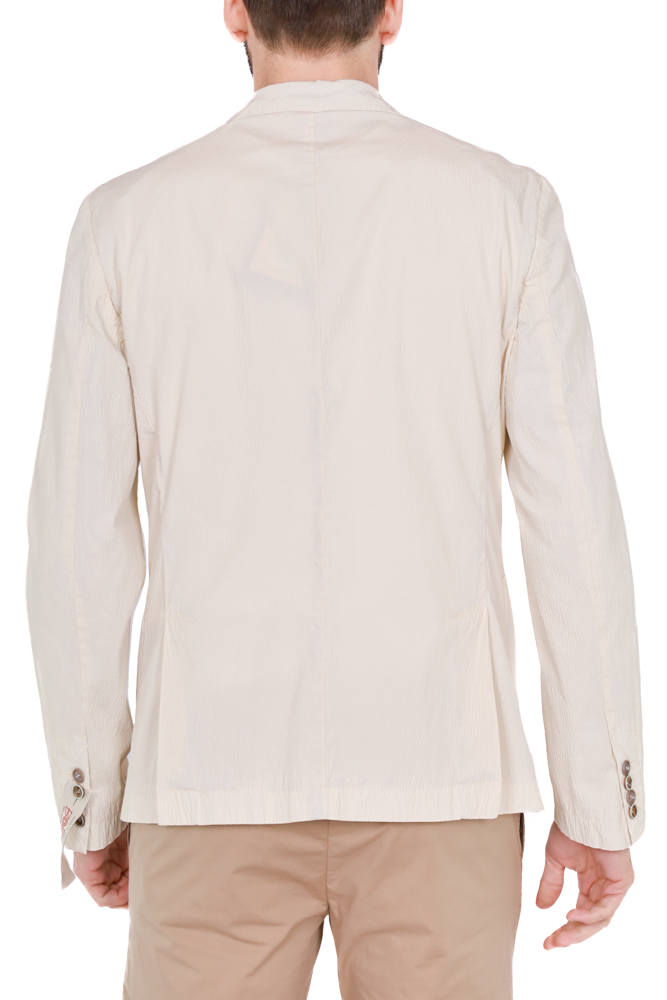 Giacca blazer monopetto destrutturata in tessuto goffrato di cotone stretch, modello dal fit comodo e moderno per un outfit casual