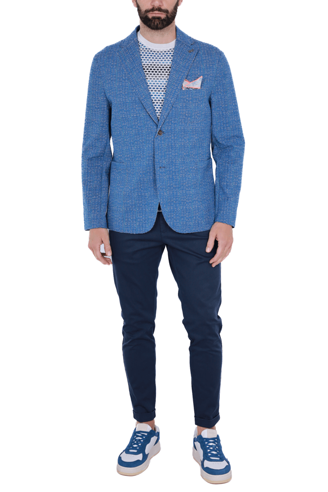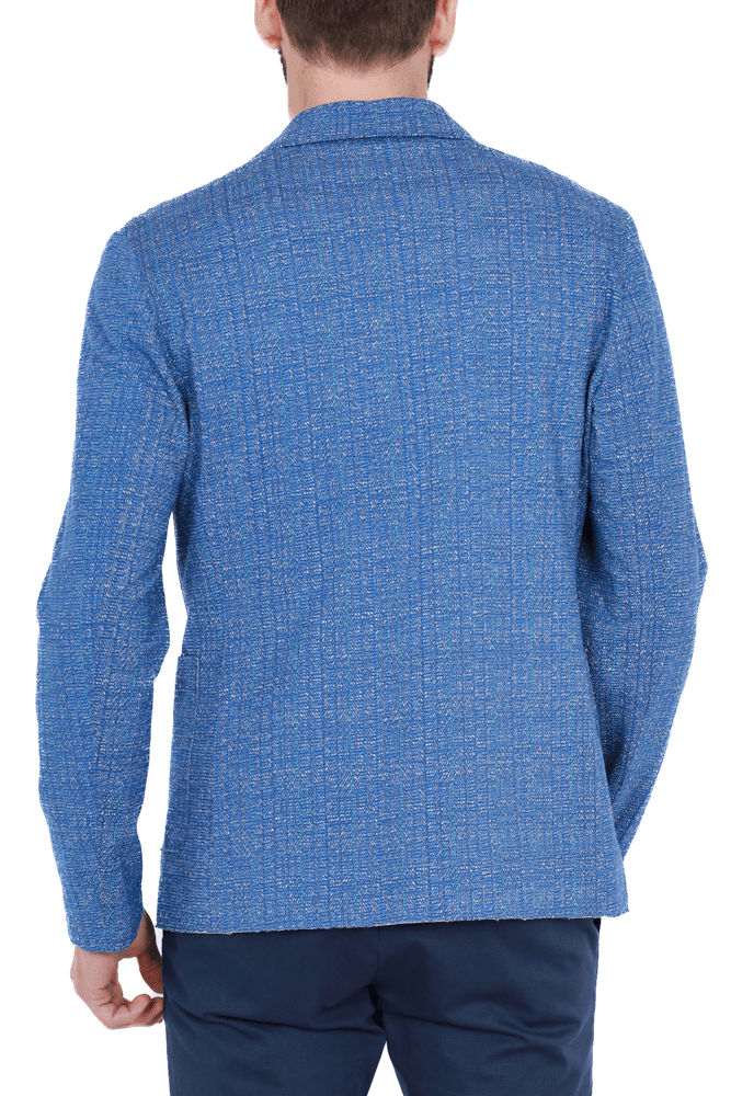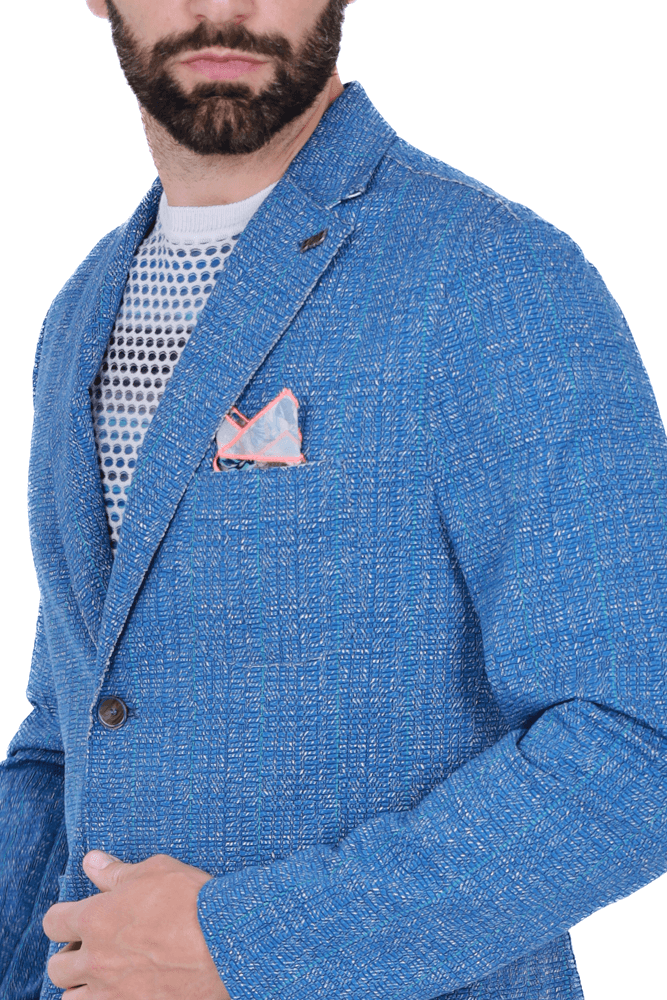 Giacca blazer monopetto destrutturata in tessuto di cotone stretch stampato, modello arricchito da taschino pochette dal fit confortevole e moderno per un outfit casual