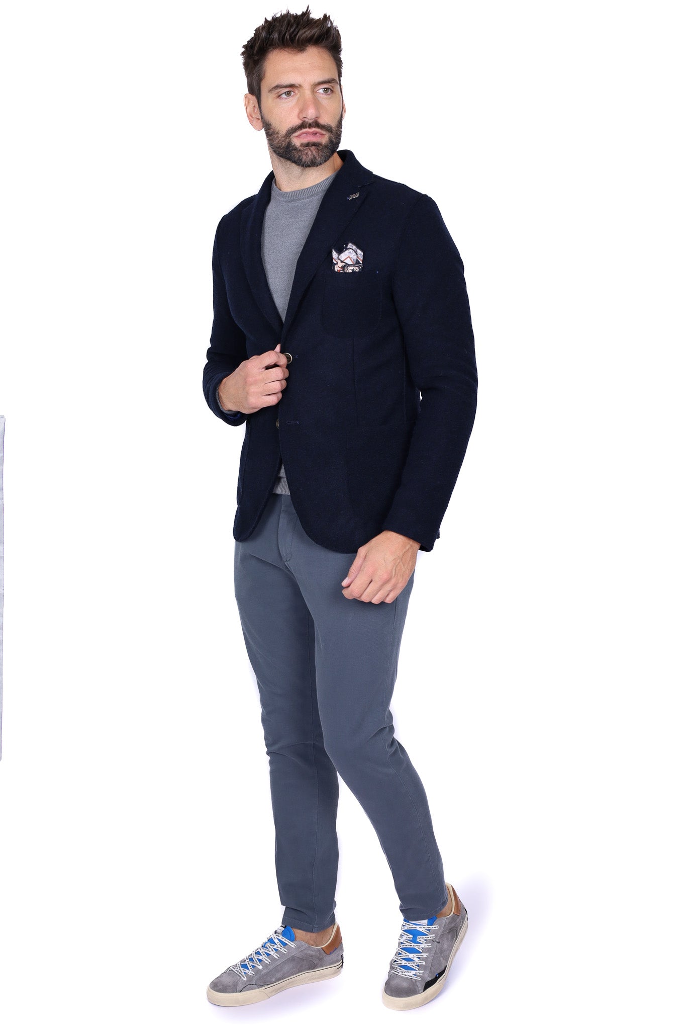 Giacca uomo monopetto in lana con pochette blu