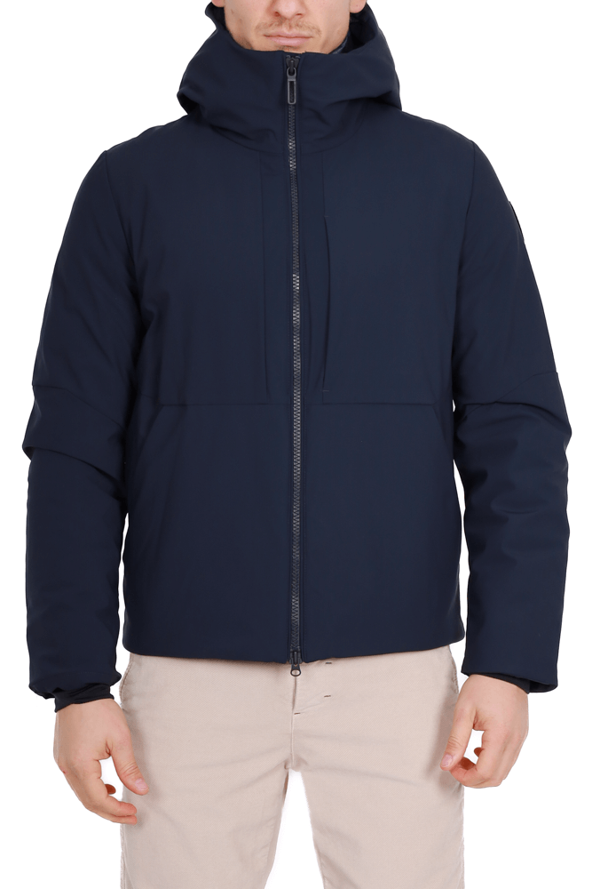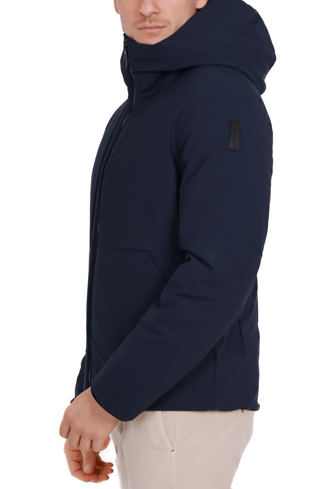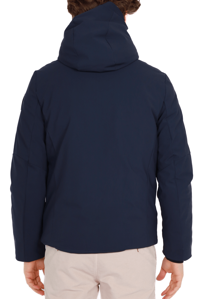 Giacca invernale corta con calda imbottitura e collo avvolgente con cappuccio