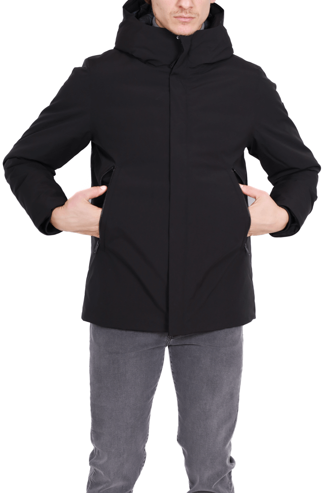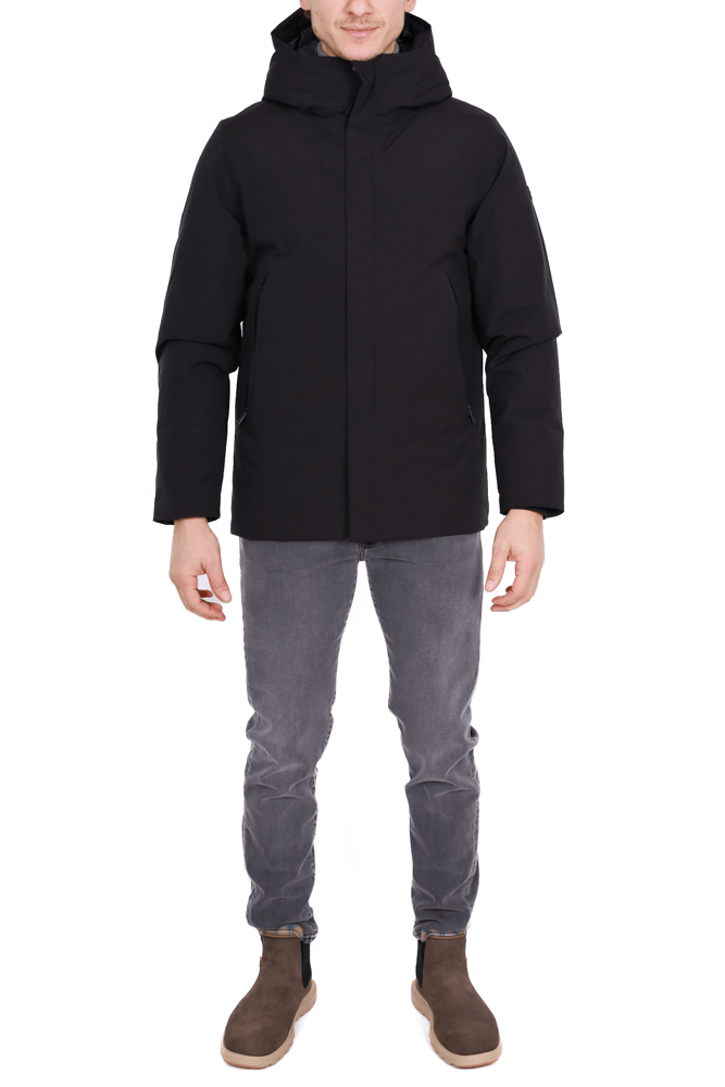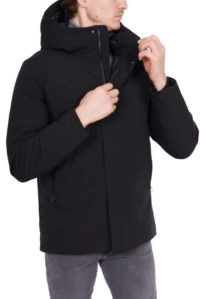 Parka uomo imbottito con cappuccio nero