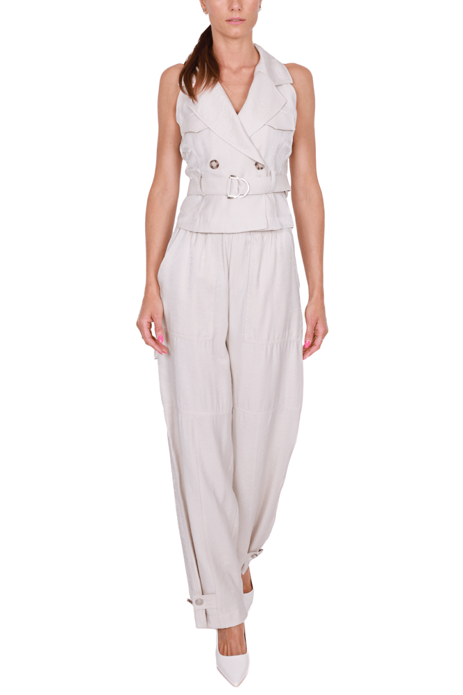 Pantalone donna elegante in fresco tessuto di viscosa, modello con tasche america ed elastico in vita perfetto per un look estivo sofisticato