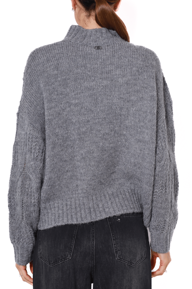 Maglia dolcevita in misto alpaca lavorazione a trecce con motivo di paillettes