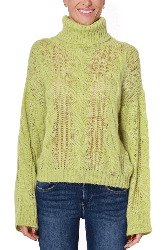 Maglia dolcevita in misto alpaca lavorazione a trecce con dettagli di lurex