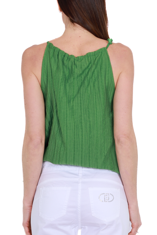 Top scollo americana in fresco tessuto operato di misto lyocell, modello con laccetto sullo scollo