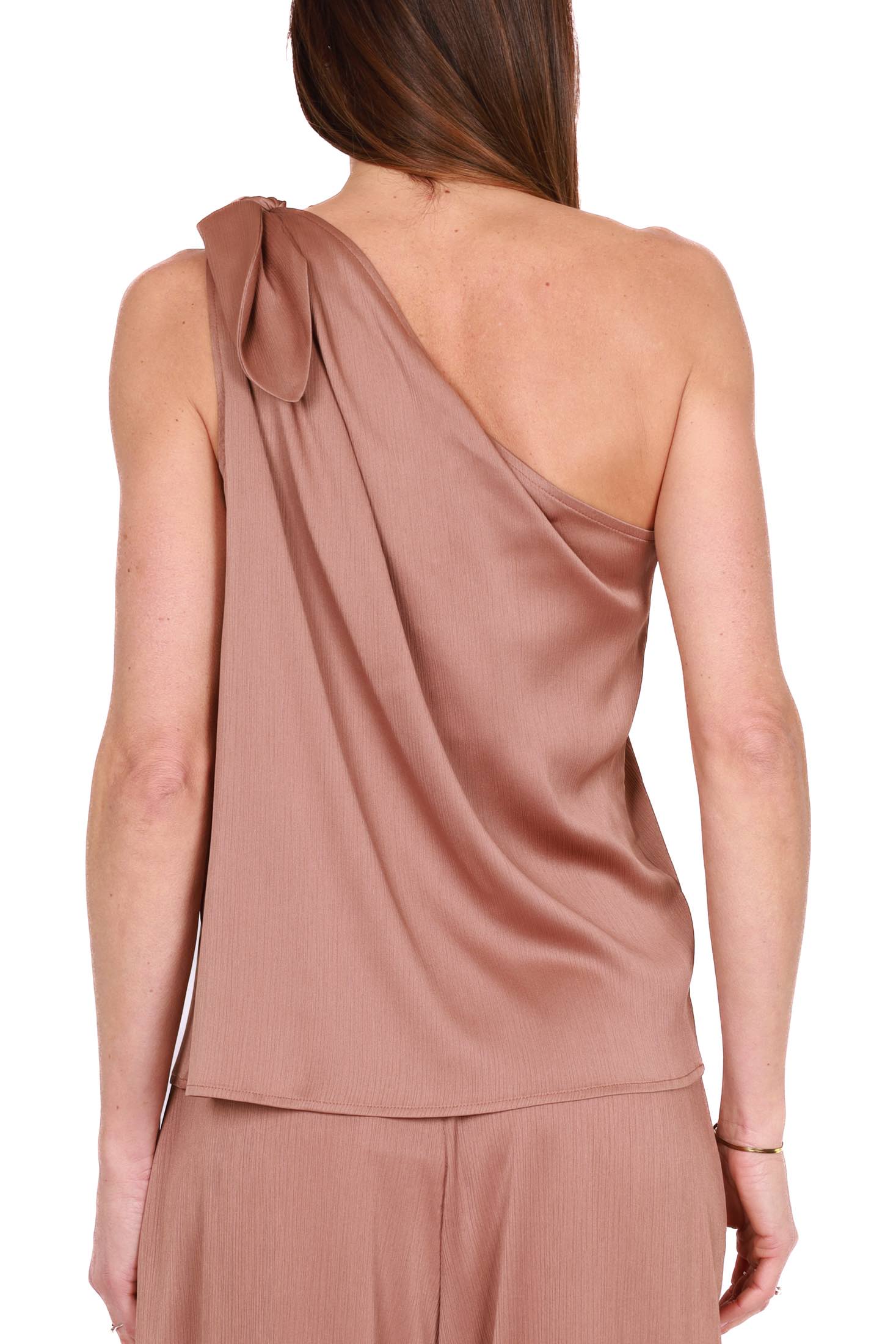 Top monospalla in tessuto fluido
