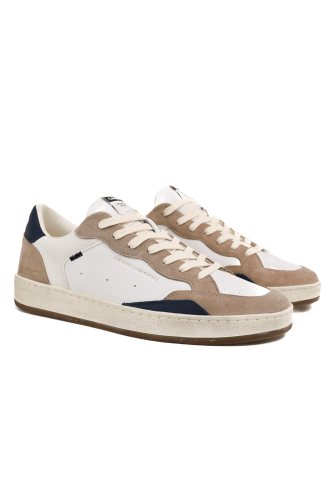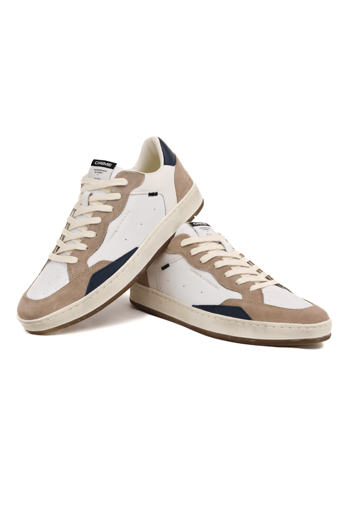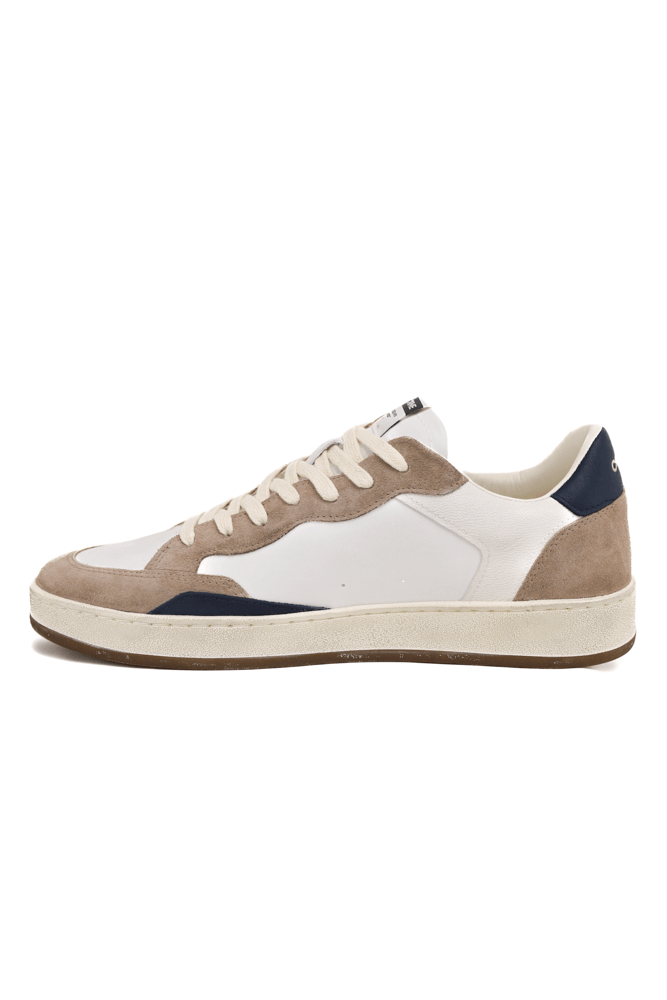 Sneakers uomo in pelle e suede effetto vintage bianco