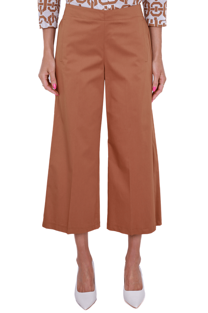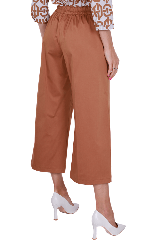 Pantalone cropped a palazzo in popeline di cotone con elastico in vita