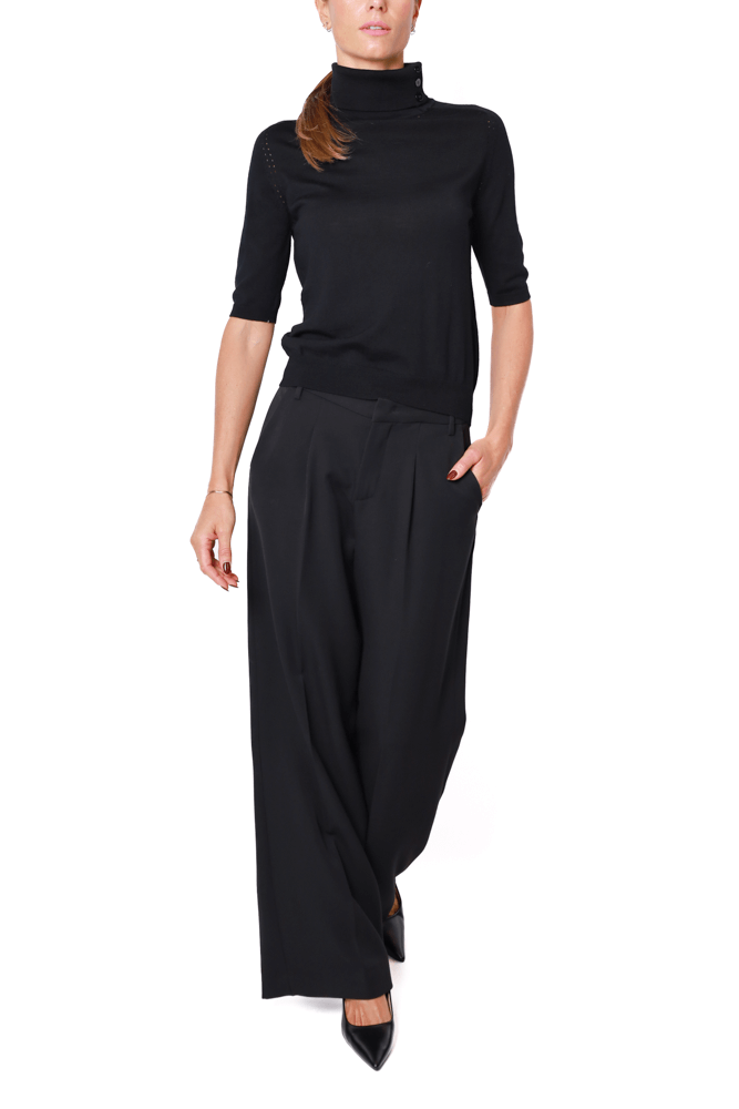Pantalone a palazzo con pinces e inserto di tessuto con elastico in vita