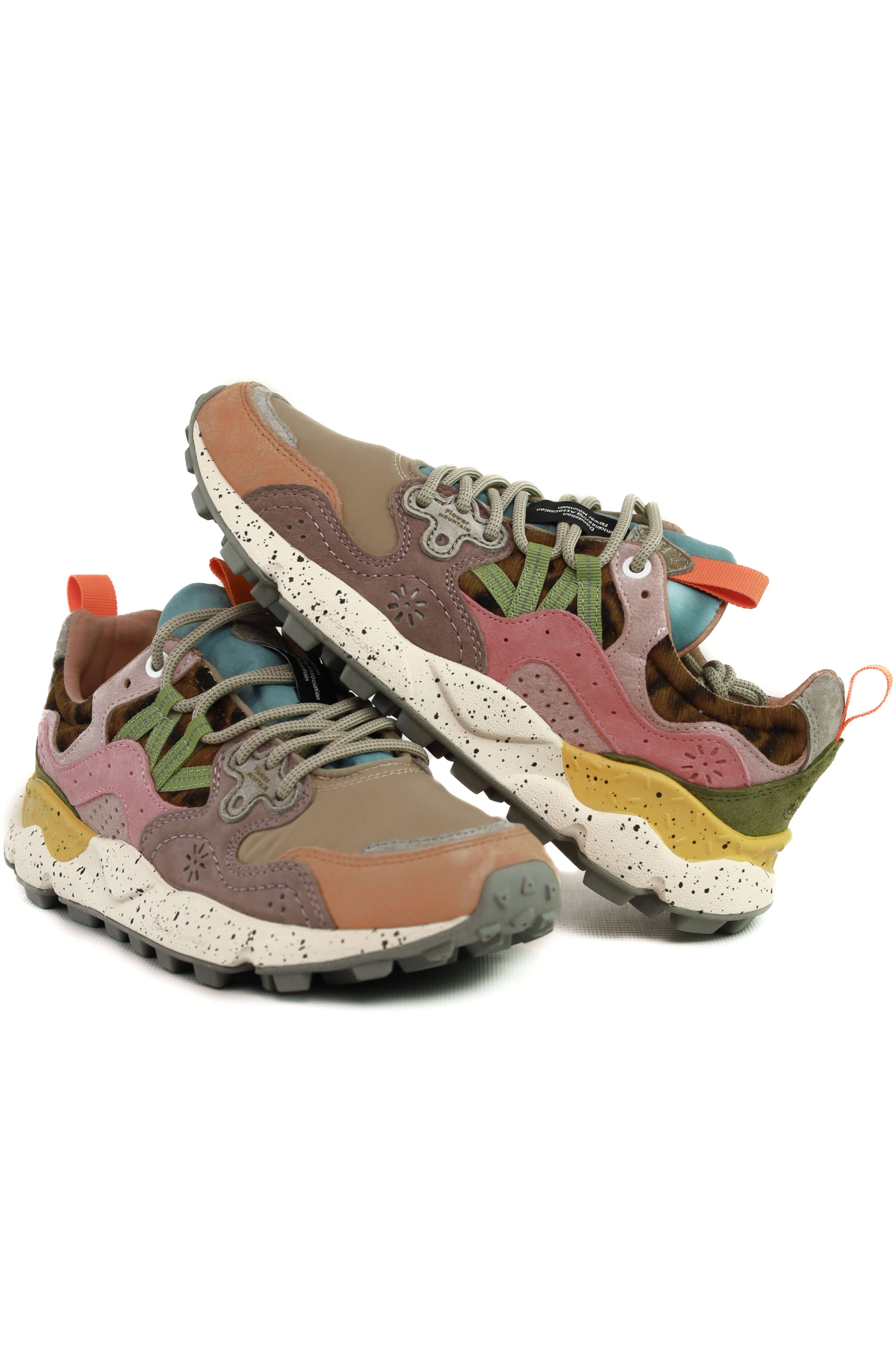 Sneaker multicolore dal design vivace e contemporaneo, realizzata con inserti in suede, pelle e tessuto tecnico. La suola in gomma con effetto puntinato e battistrada dentellato assicura leggerezza e comfort, mentre i dettagli cromatici femminili e i contrasti materici la rendono perfetta per completare outfit casual e di tendenza.
