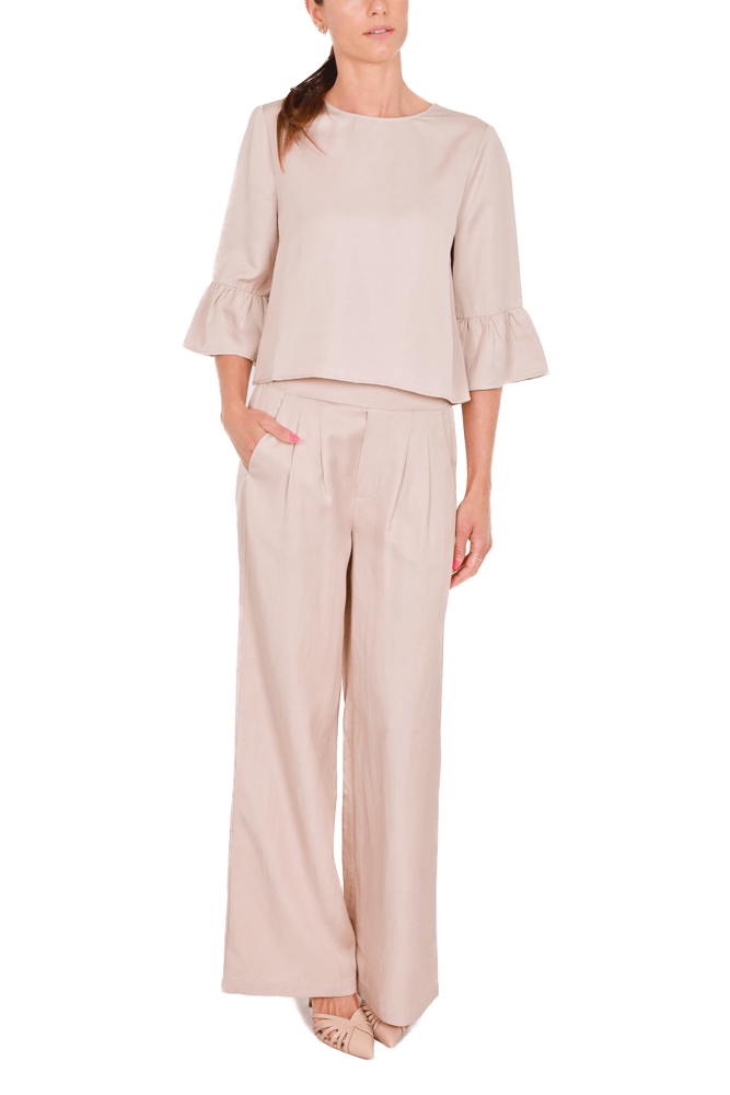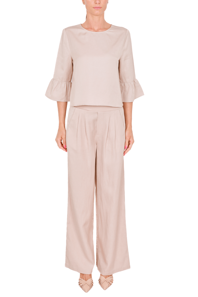 Pantalone a palazzo in lino e viscosa beige
