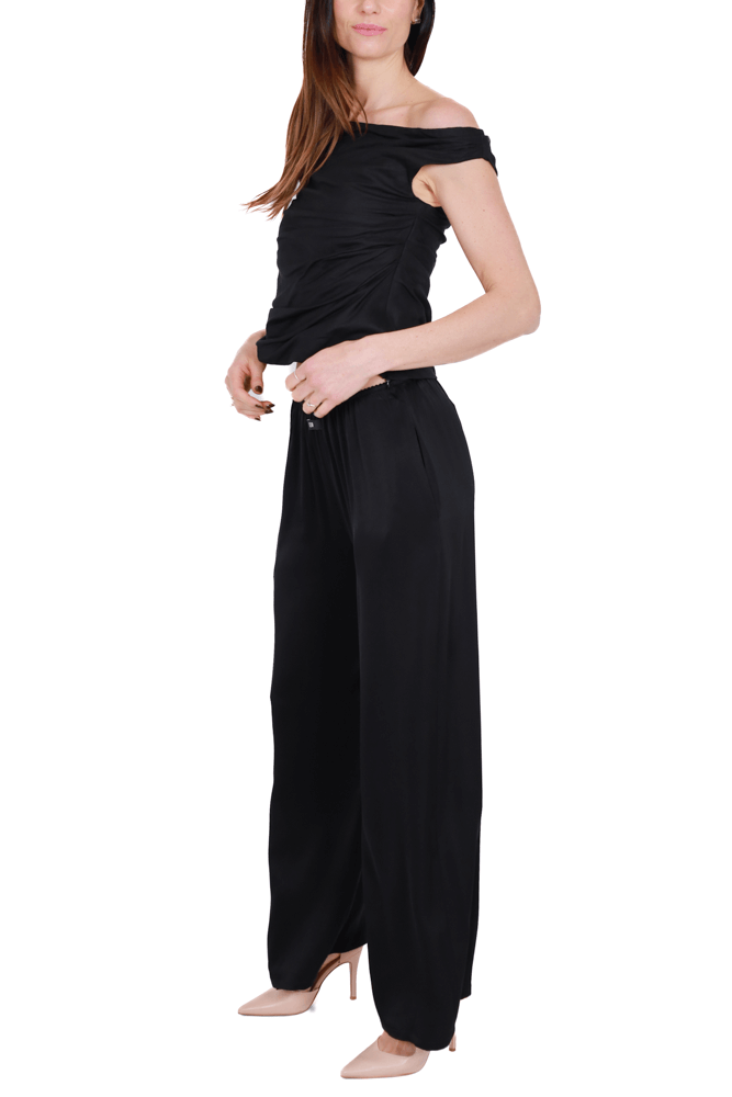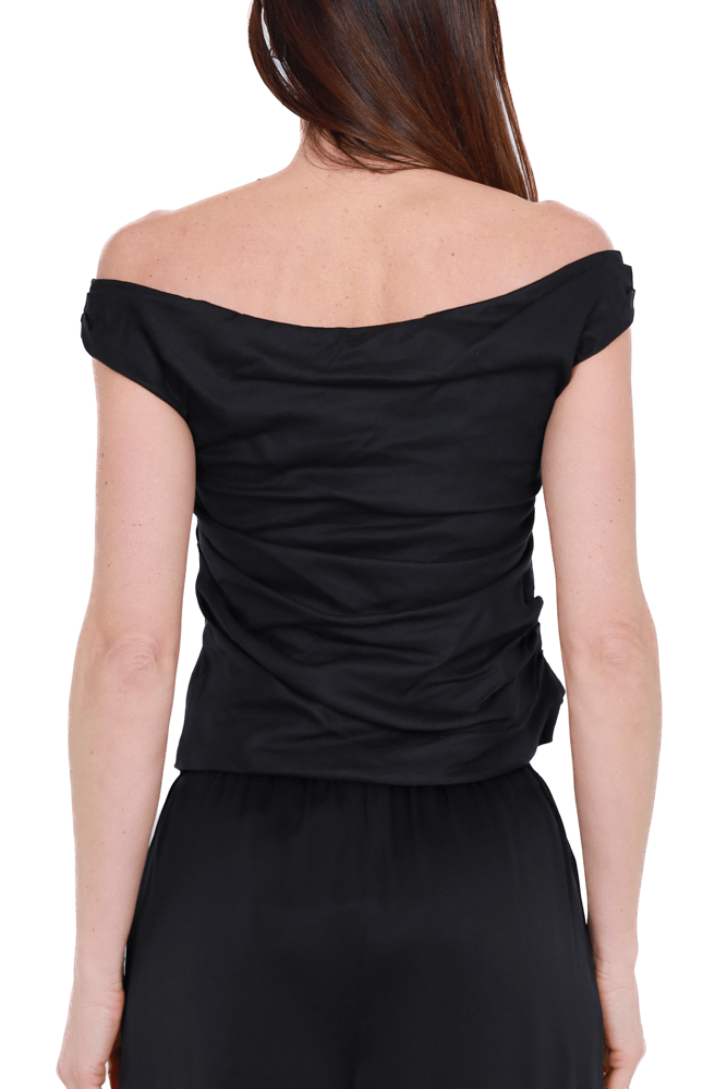 Top drappeggiato in misto lino nero