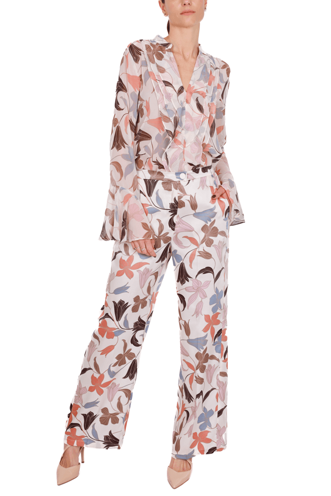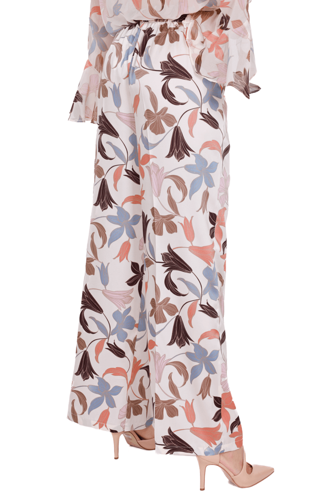 Pantalone a paalzzo in twill fantasia floreale modello con inserto di elastico sul retro della vita