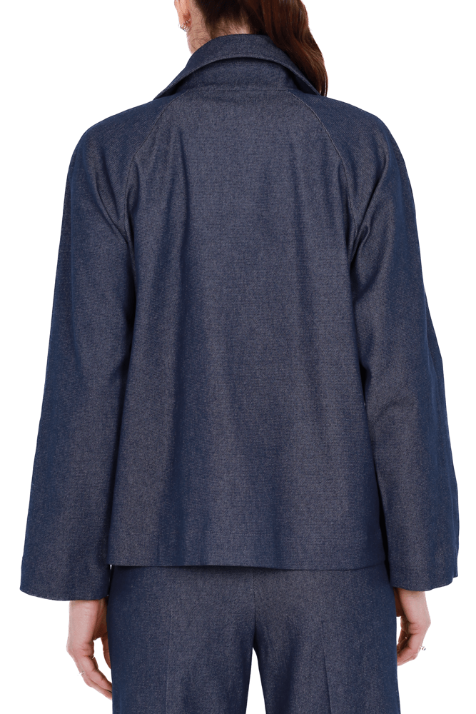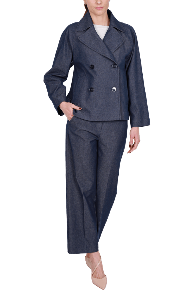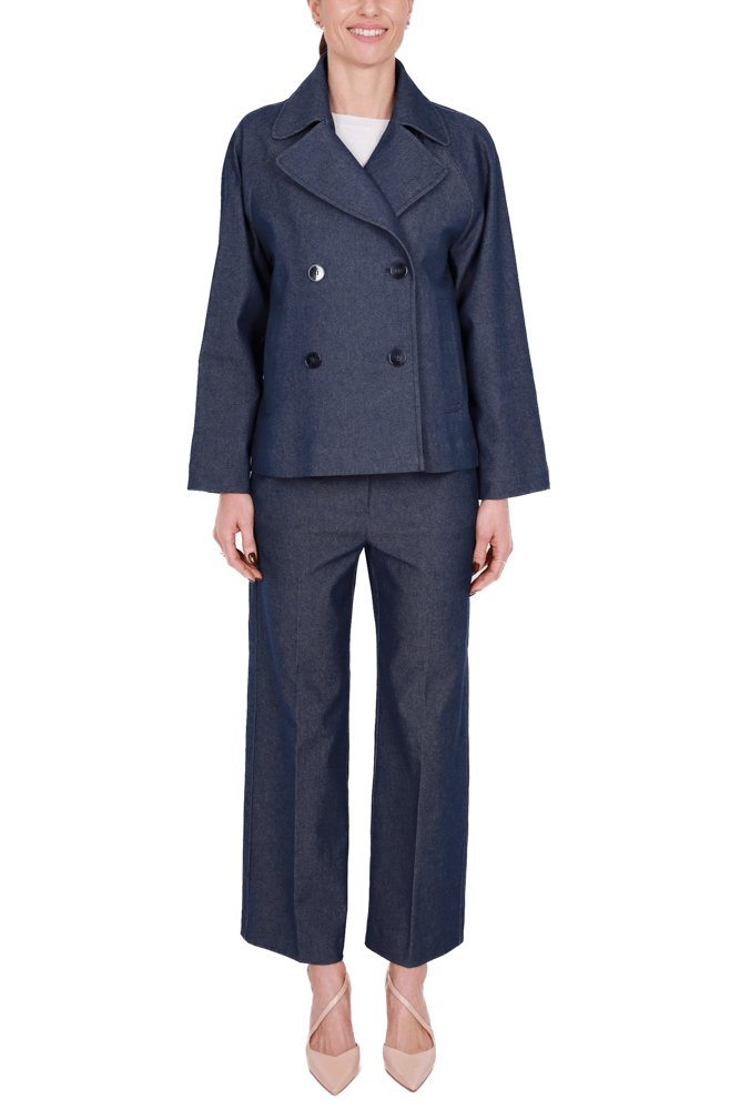 Trench corto doppiopetto in tela denim lavaggio scuro