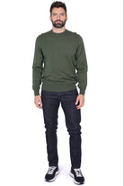 Maglia girocollo da uomo in puro cotone verde militare, leggera e confortevole, con polsi e fondo a costine per una vestibilità perfetta. Design essenziale e versatile, adatta per uno stile casual da tutti i giorni o come capo basic per abbinamenti più curati. Ottima da indossare sola o sotto una giacca in ogni stagione.