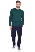 Maglione girocollo da uomo in calda lana verde bosco, caratterizzato da una linea pulita con polsi, collo e fondo a costine per una vestibilità confortevole. Perfetto per la stagione autunno/inverno, dona comfort e stile sia in abbinamento casual che sotto una giacca elegante. Un essenziale nel guardaroba maschile per affrontare il freddo con stile e praticità.