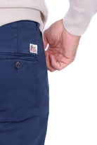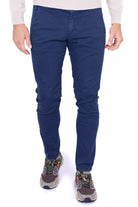 Pantalone chino da uomo in cotone stretch, dal taglio slim fit moderno che valorizza la silhouette senza rinunciare al comfort. Chiusura con zip e bottone, tasche america laterali e doppia tasca a filo posteriore con bottoni. Il colore blu navy lo rende versatile e sempre attuale, perfetto per outfit sia casual che formali.