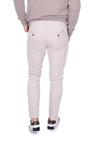 Pantalone chino da uomo in cotone stretch, caratterizzato da una vestibilità slim fit che valorizza la linea della gamba senza costringere. Stiloso e pratico, con chiusura a zip e bottone, tasche america laterali e doppia tasca posteriore a filo con bottoni. Il colore panna dona luminosità e si abbina facilmente sia a capi chiari che scuri, per outfit casual chic o più formali.