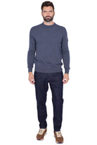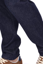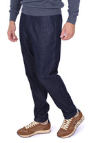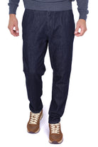 Pantalone da uomo in denim blu scuro con pinces frontali, dal design contemporaneo e versatile. Tessuto in cotone denim morbido, linea dritta, chiusura con zip e bottone. Dotato di tasche laterali a filo e doppia tasca posteriore con bottone. Perfetto per un look casual ricercato, facile da abbinare sia a camicie che a maglioni.