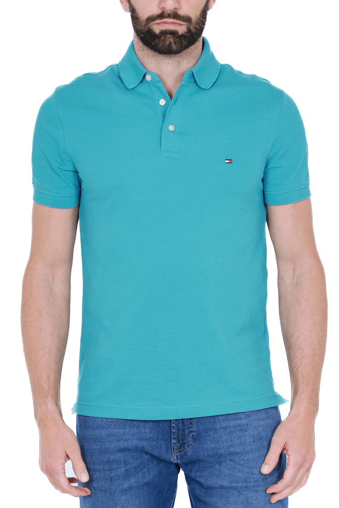 Polo uomo mezza manica in piquet di cotone stretch, modello con iconica bandierina logo ricamata