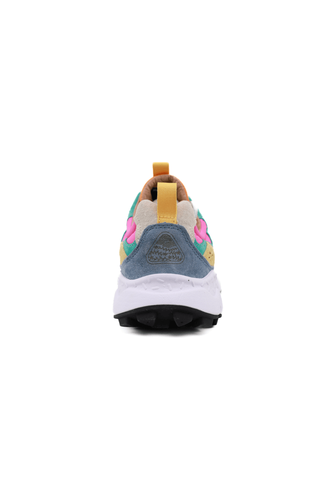 Sneaker multicolore e multi materiale dal design moderno, realizzate in morbido camoscio e tessuto tecnico, la leggerezza e originalità della suola in gomma e il sottopiede in sughero naturale antibatterico la rendono l’accessorio ideale per i tuoi outfit comodi e alla moda