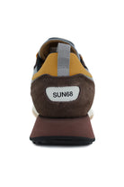 Sneakers da uomo dal design running contemporaneo, realizzate in mix di suede, mesh e inserti sintetici nei toni del grigio e marrone, con lacci color ocra a contrasto che donano un carattere sportivo e grintoso. La suola alta in gomma bicolore assicura un ottimo assorbimento degli urti e slancia la figura, mentre il logo laterale applicato e il tallone strutturato garantiscono stabilità, perfette da abbinare a jeans o jogger per outfit casual urbani.