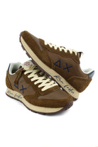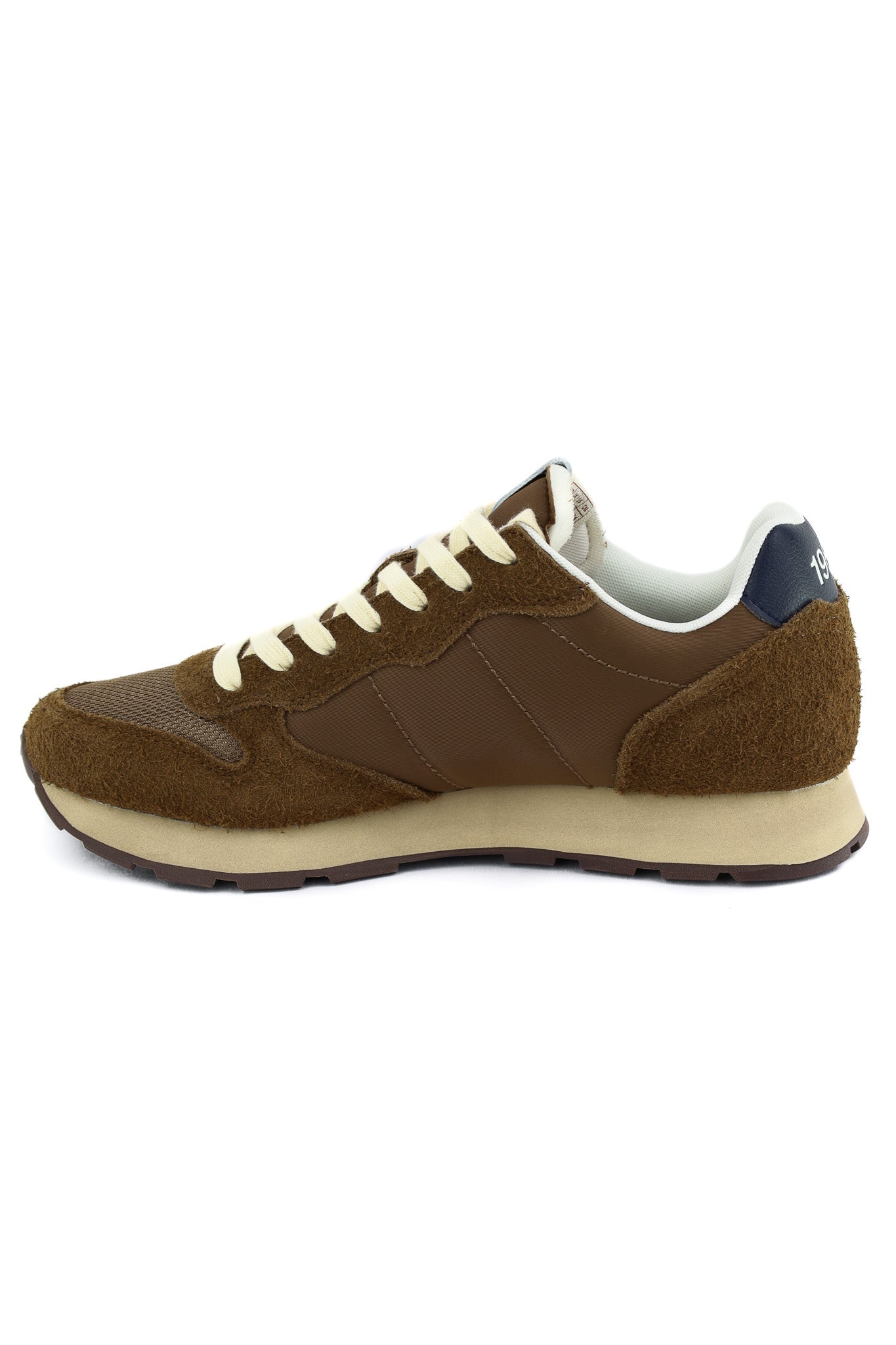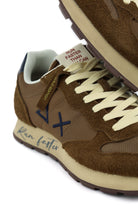 Sneakers da uomo dal look running rétro in tonalità marrone, realizzate con tomaia in mix di pelle scamosciata, tessuto tecnico e inserti in nylon per garantire leggerezza, traspirabilità e resistenza all’uso quotidiano. Perfetta da abbinare a jeans o pantaloni casual per outfit sportivi ma curati. La suola in gomma con battistrada antiscivolo assicura grip e comfort durante la camminata.