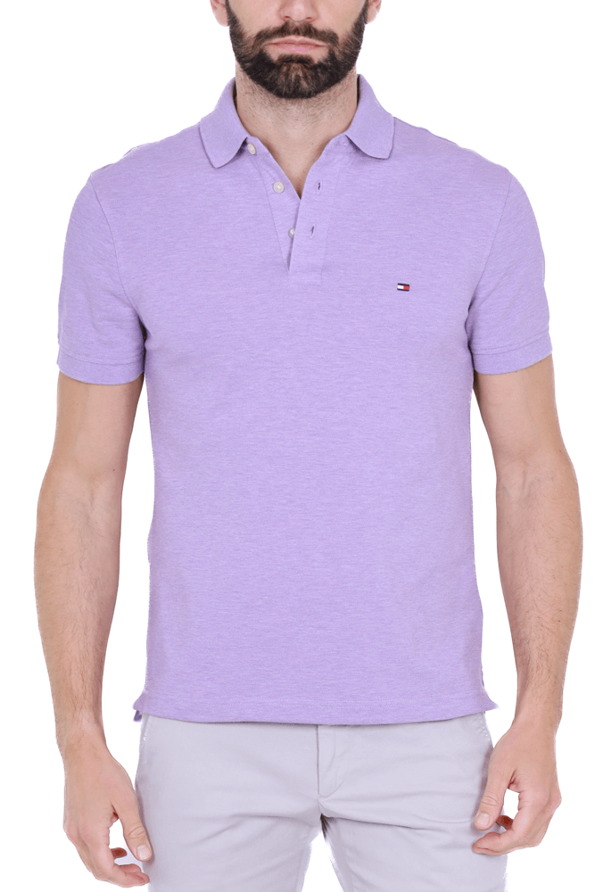 Polo uomo mezza manica in piquet di cotone stretch, modello con iconica bandierina logo ricamata
