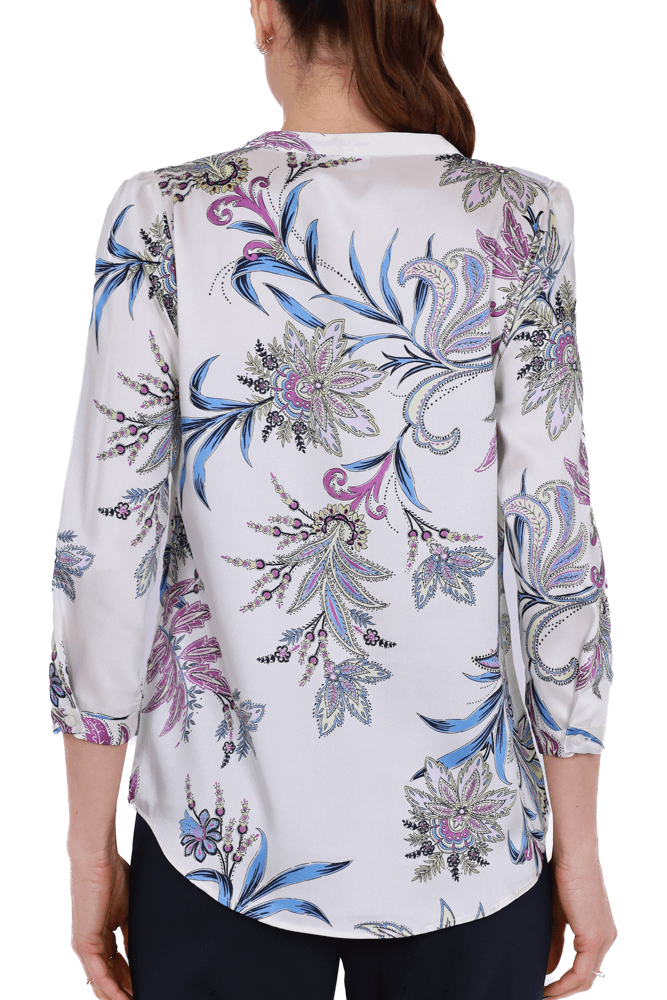 Camicia collo a fascetta e maniche a tre quarti in tessuto twill fantasia