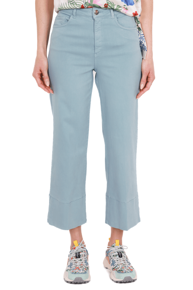 Jeans cropped in bull denim stretch azzurro