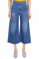 High-waisted palazzo jeans in cotton and linen denim with cargo-style patch pockets