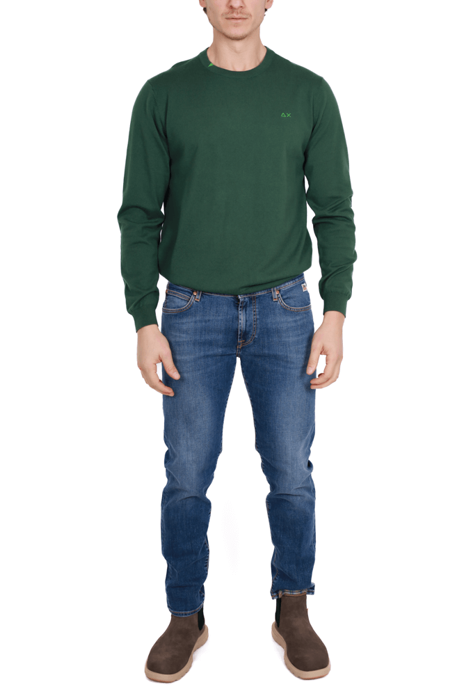 Maglia uomo girocollo in merino e cotone verde