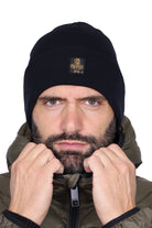 Berretto in lana blu scuro, lavorazione a costine e risvolto alto con patch logo Refrigiwear applicato sul davanti. Comodo e caldo, taglia unica unisex, completa ogni outfit invernale con stile, ideale sia per l’uso quotidiano che per il tempo libero.