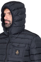 Piumino uomo trapuntato con cappuccio nero