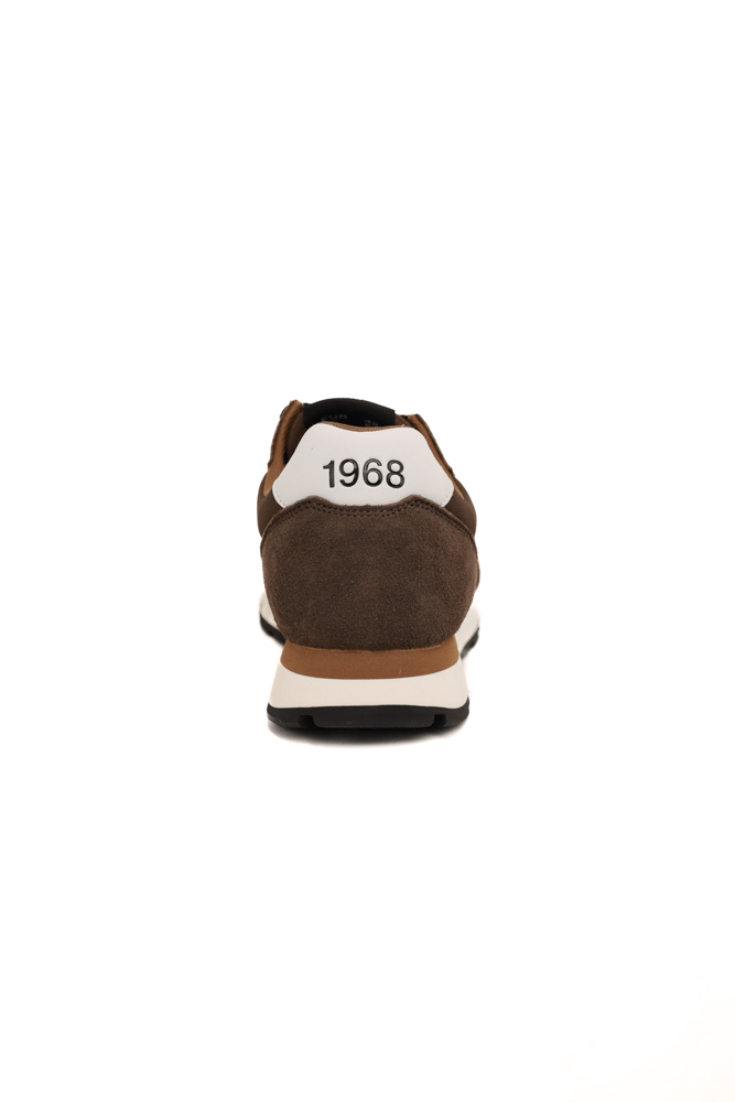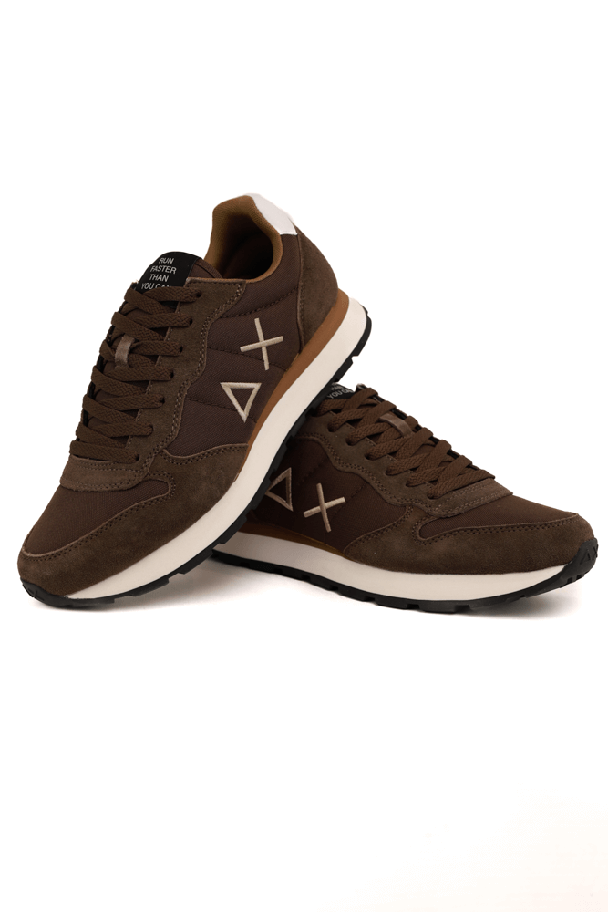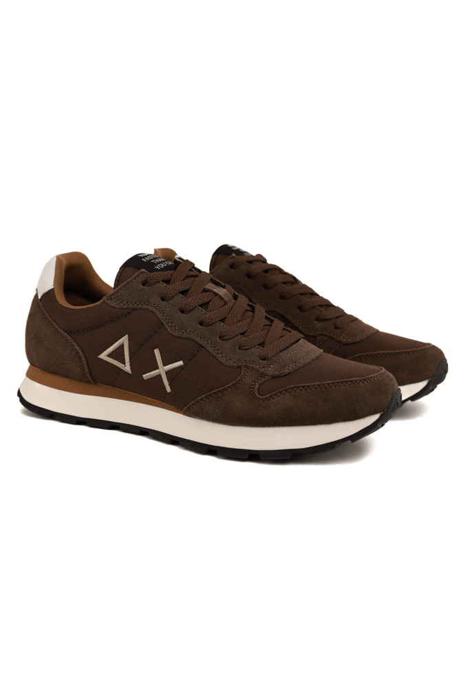 Sneakers uomo in pelle e tessuto marrone