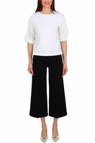 Cotton jersey T-shirt with three-quarter puff sleeves in cotton poplin with elastic ruffle at the armhole