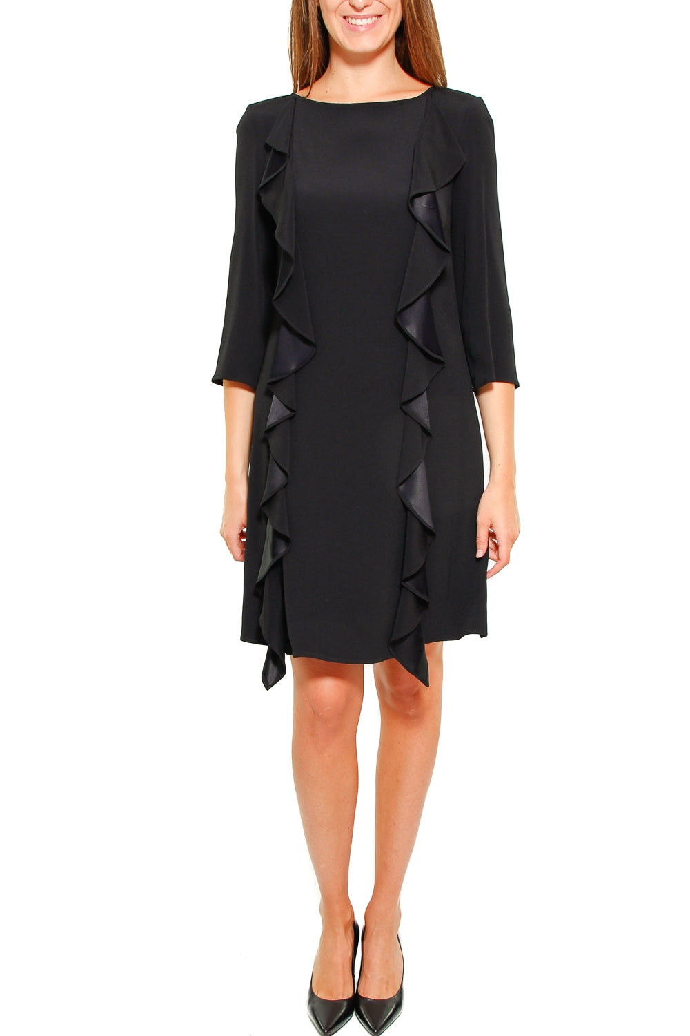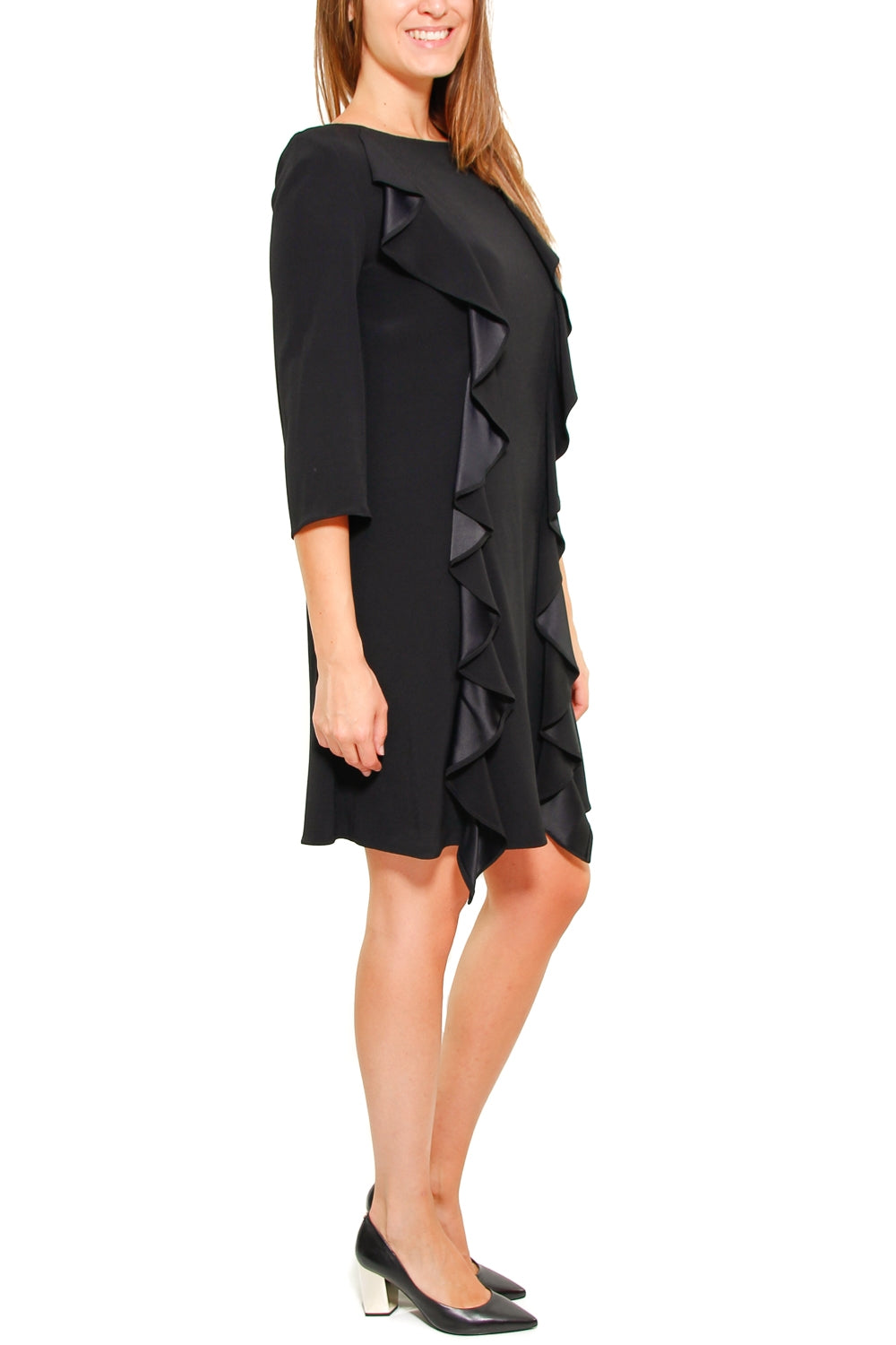 Abito in tessuto fluido con maniche 3/4 e volants sul davanti