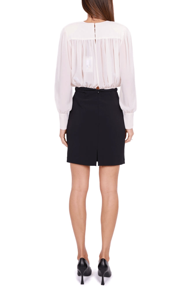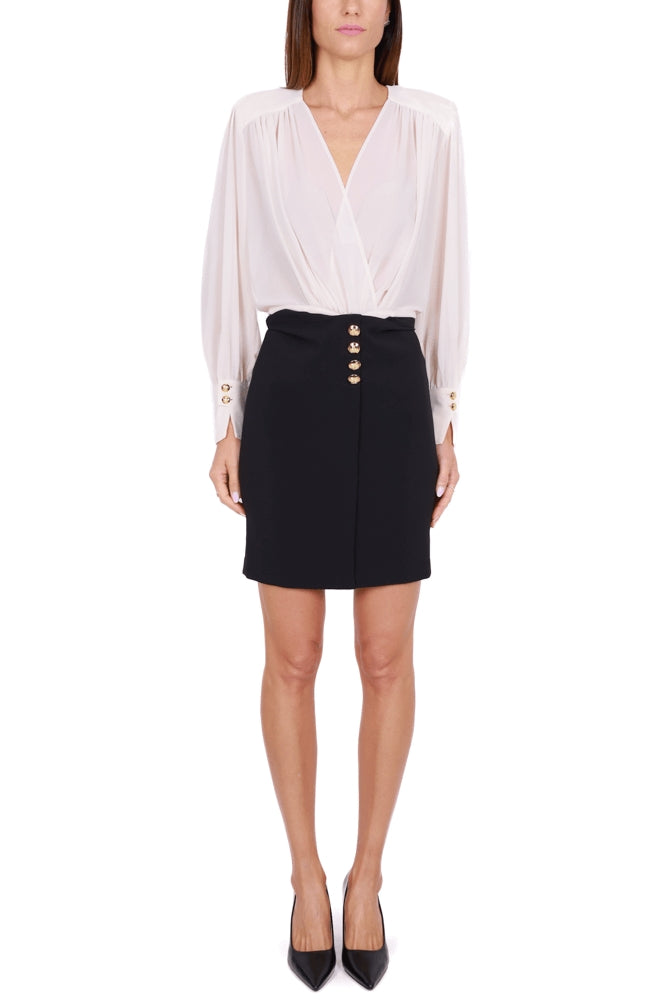 Vestito corto con gonna in crêpe stretch e blusa in georgette con scollo incrociato