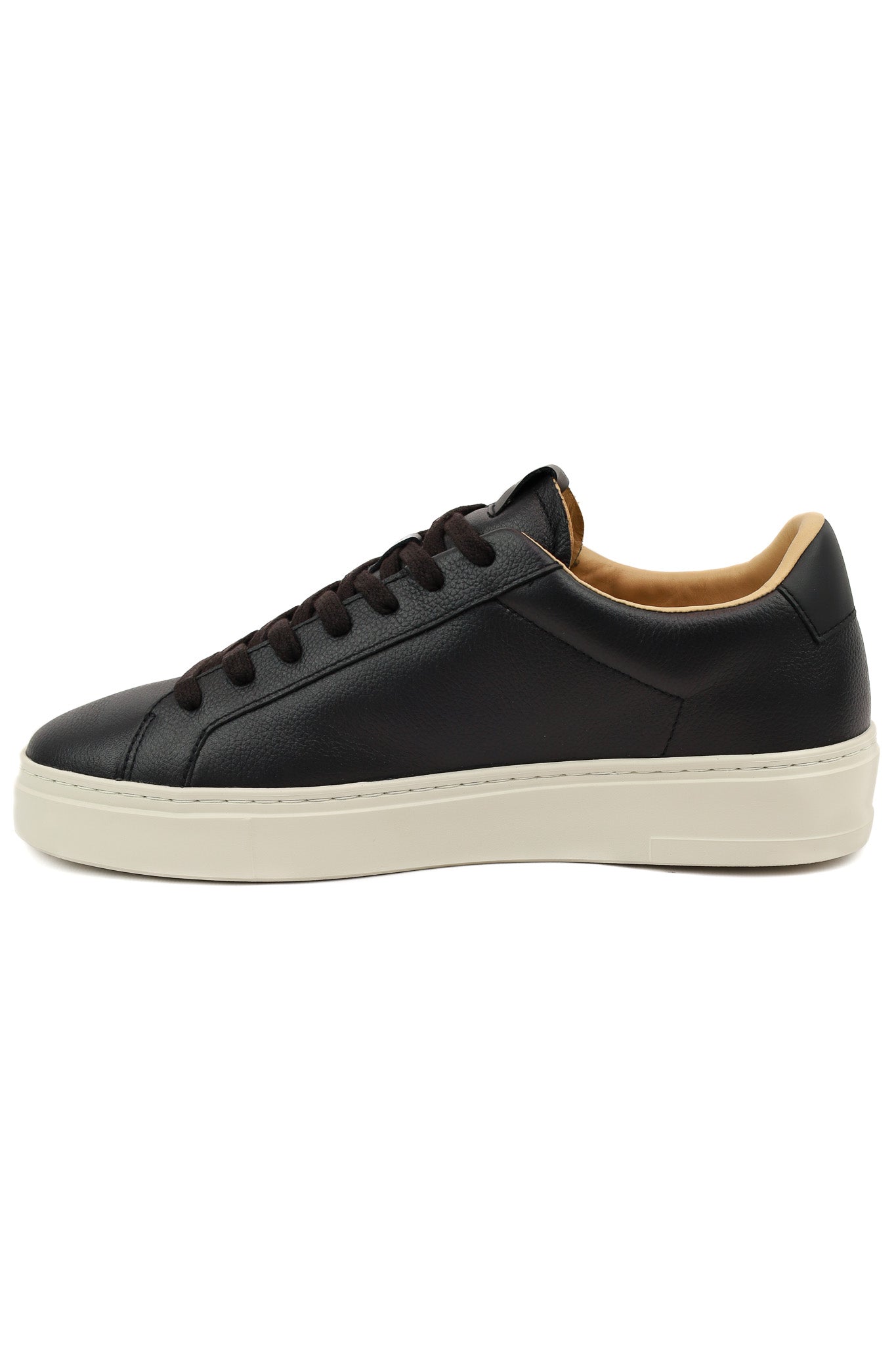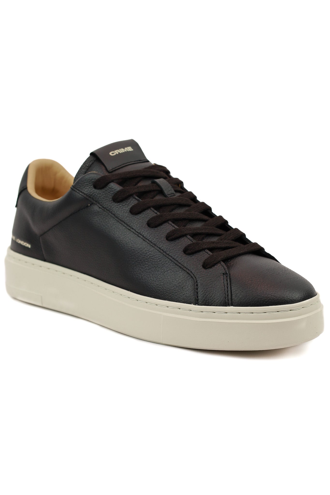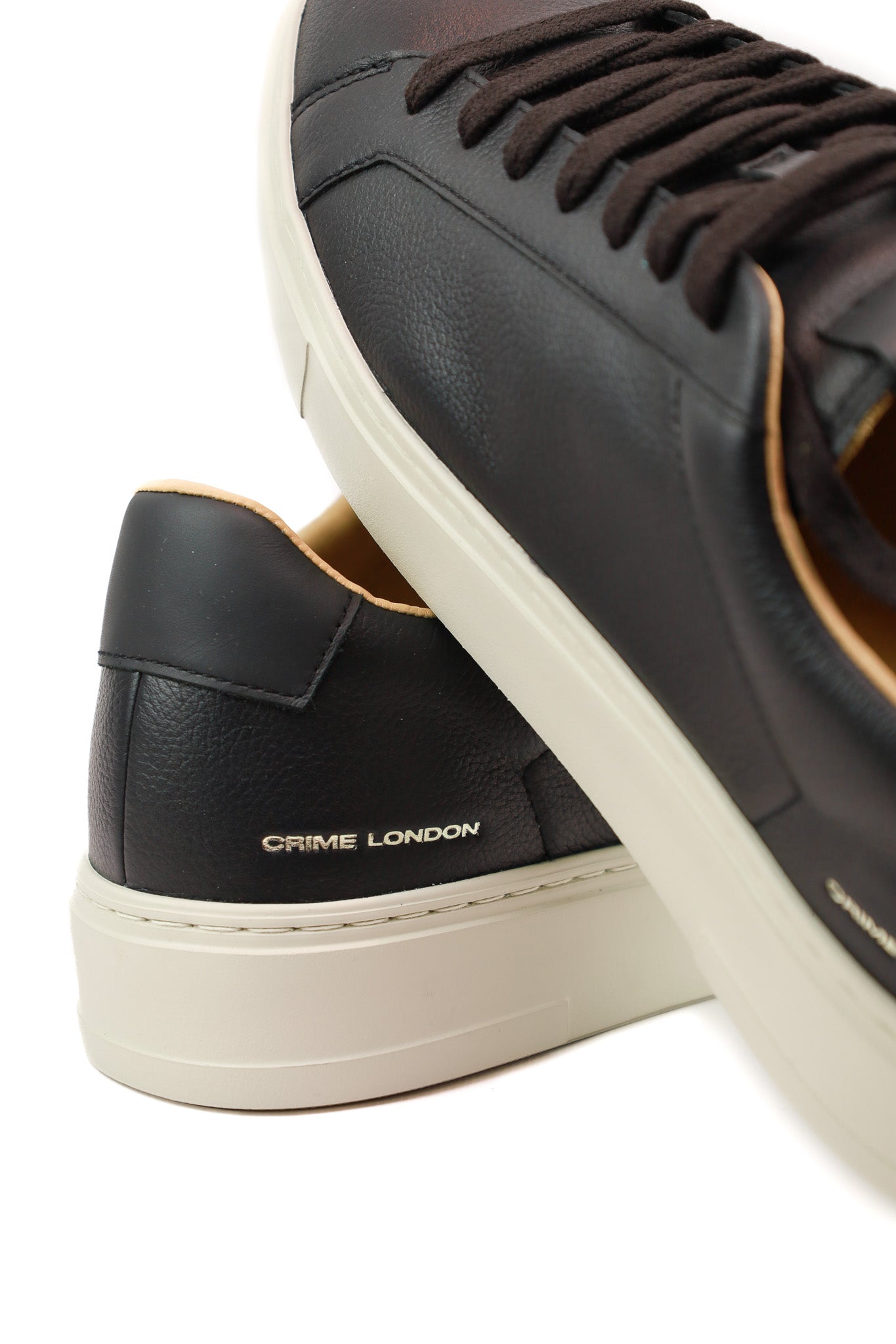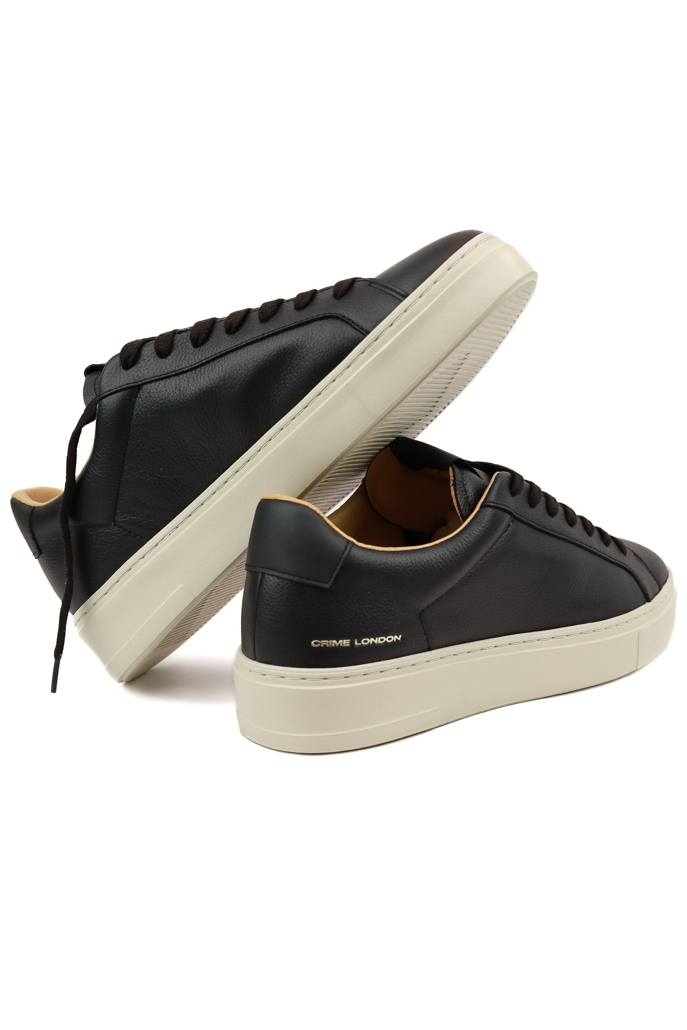 Sneaker bassa dalla linea essenziale firmata Crime London. Realizzata in pelle nera premium dal finish leggermente martellato, presenta un design pulito ed elegante, completato dalla suola bianca a contrasto dall’aspetto minimal e contemporaneo. Gli interni in pelle chiara assicurano comfort e traspirabilità per un utilizzo quotidiano.