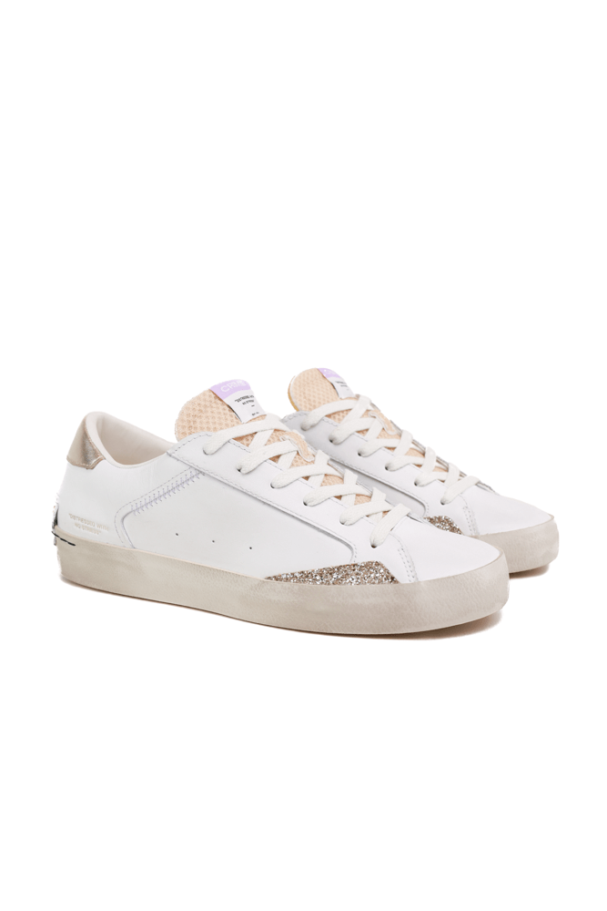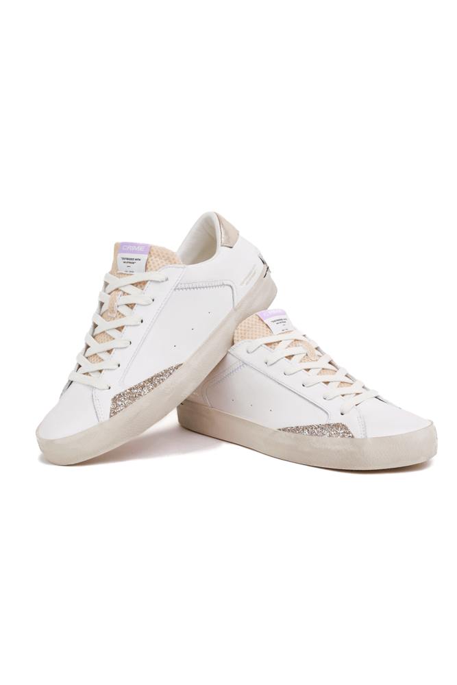 Sneakers donna con dettagli laminato in pelle bianco